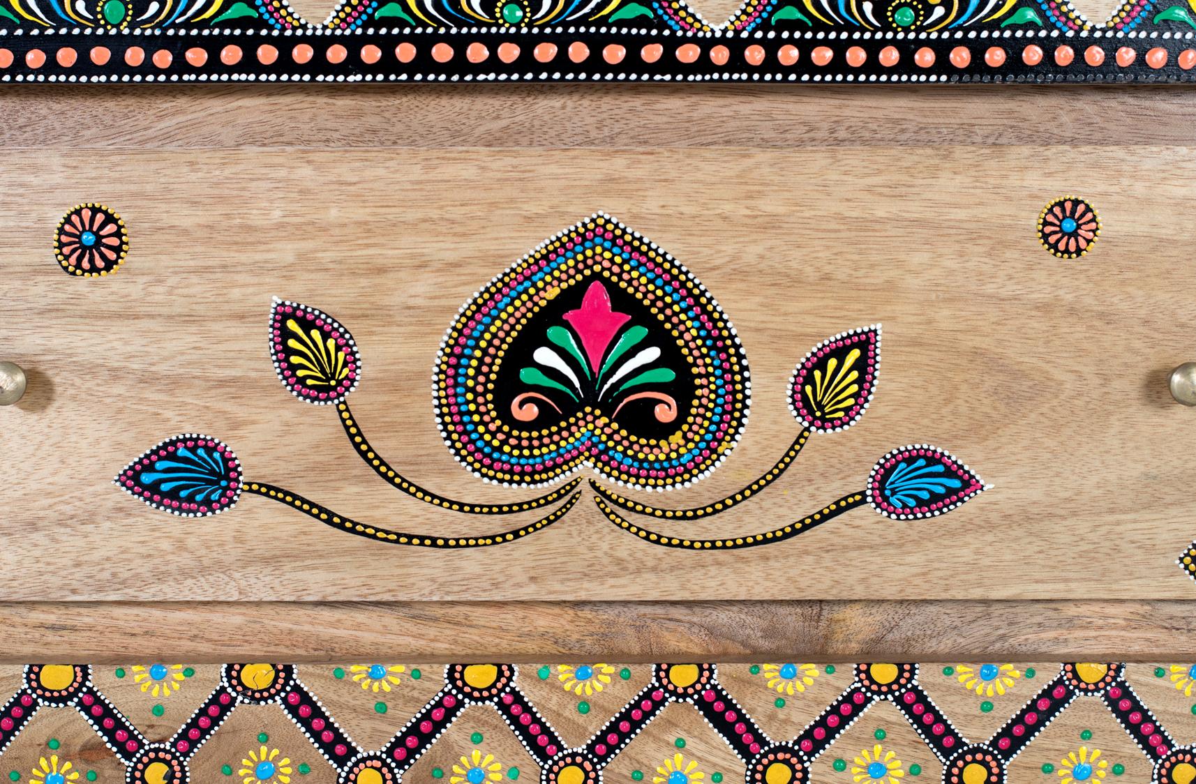 Lipasto massiivimangopuusta käsinmaalatuilla yksityiskohdilla