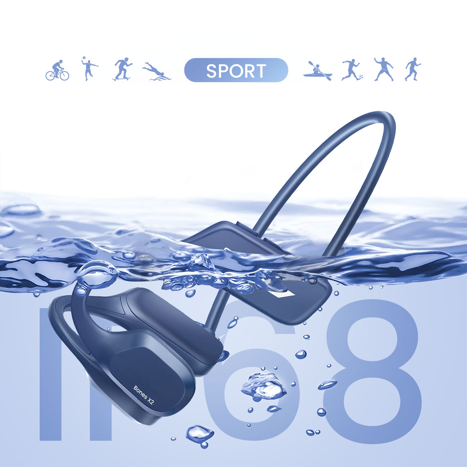 Nämä siniset Bone X2 -luujohtokuulokkeet on suunniteltu urheiluun ja uintiin IP68-luokituksen ansiosta. Voit kuunnella musiikkia Bluetoothin kautta tai suoraan toiston kautta 8 GB:n sisäisen muistin ansiosta. Kevyet ja mukavat, ne hajottavat ääntä luiden läpi, jotta pysyt tietoinen ympäristöstäsi. Jopa 6 tunnin akkukesto kaikkiin treeneihisi.