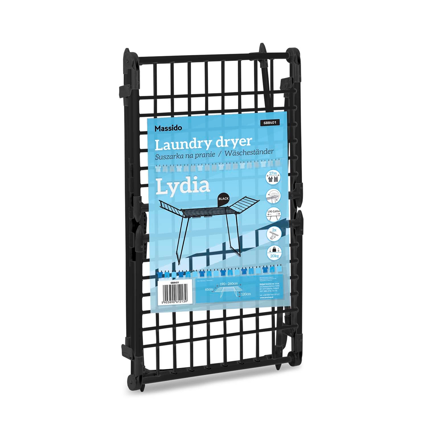 Lydia 27 m musta pidennettävä pyykinkuivausteline