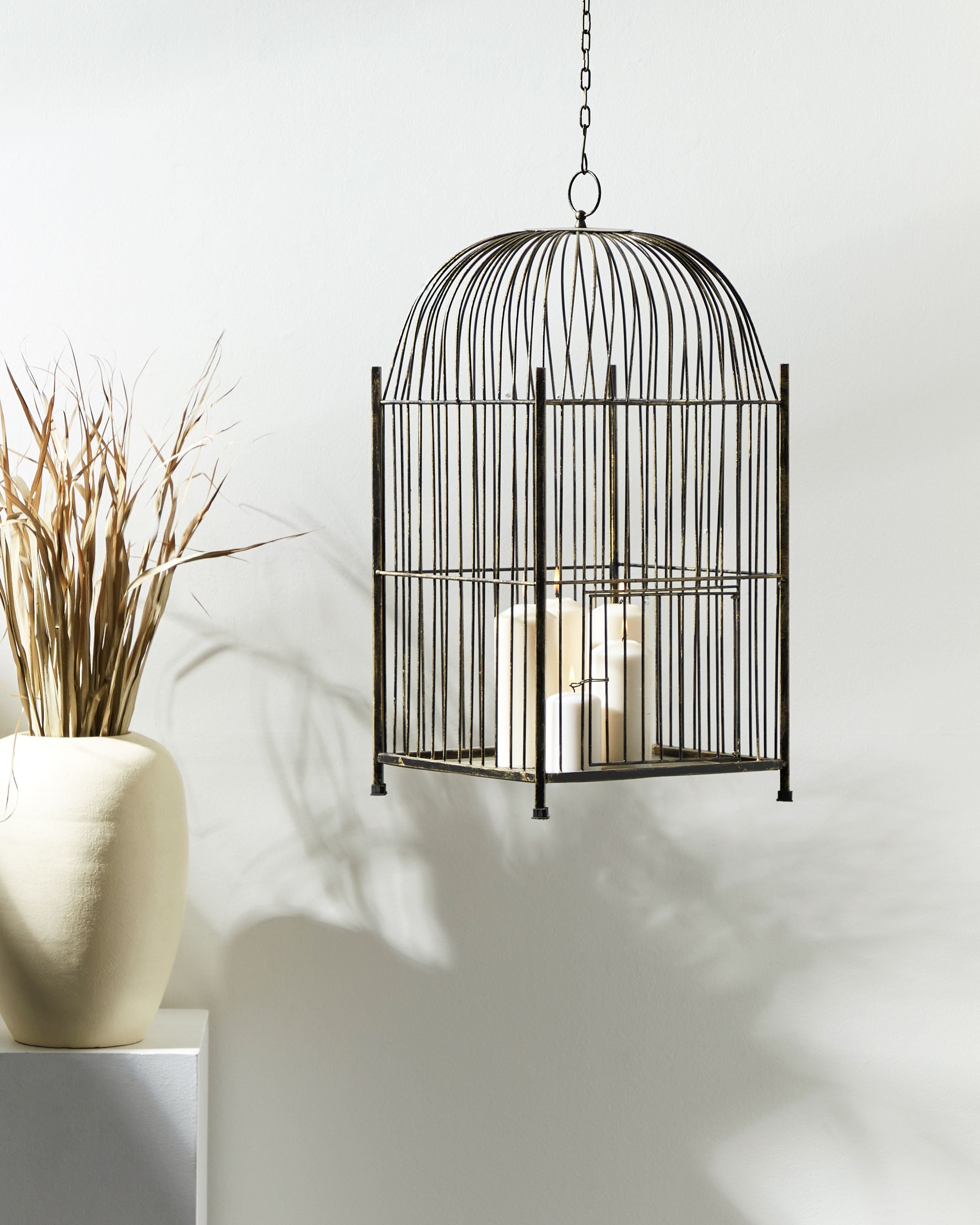 Koristeellinen roikkuva lyhty. Kaunis ja silmiinpistävä lyhty sisustukseen. Kuluneella pinnalla koristeltu lyhty on vintage-henkinen esine, joka kohottaa tilan ilmettä kestävällä viehätyksellään. Häkkiä muistuttava riippuva lyhty huokuu eleganssia ja luo ainutlaatuisen tunnelman, kun asetat sinne LED-kynttilöitä, se huokuu lämmintä ja lumoavaa valoa. Valaise ympäristösi todella poikkeuksellisella tavalla, ja lisää sisustukseesi ripaus tyylikästä valoa.