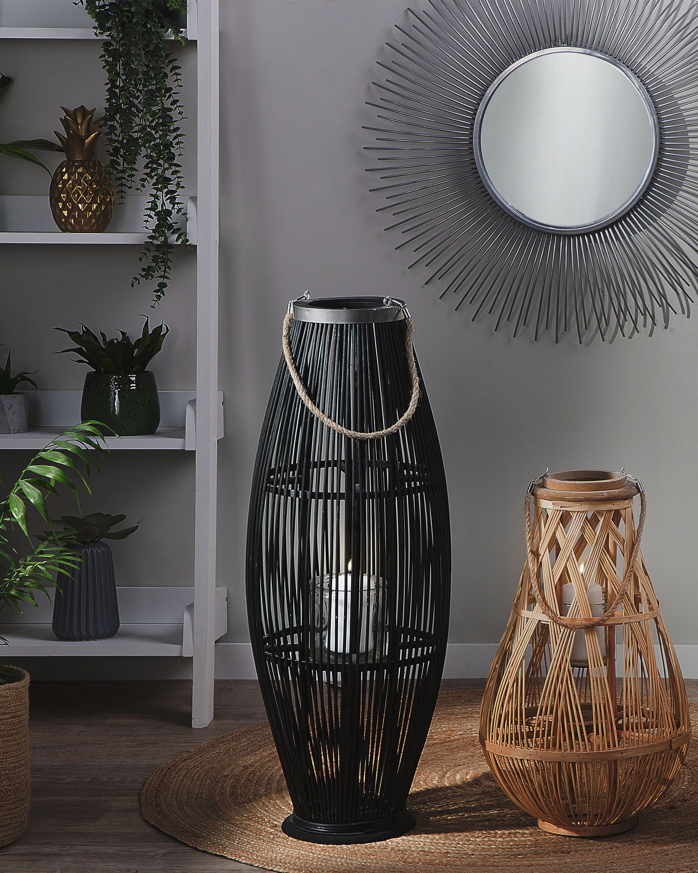 Boho-tyylinen koristelyhty. Tämä korkea, tyylikäs lyhty on täydellinen lisävaruste kesäisen tunnelman tuomiseen mihin tahansa sisä- tai ulkotilaan. Se on valmistettu punotusta pajupuusta häkkimäiseksi rakenteeksi ja se sopii hyvin yhteen minkä tahansa luonnollisen koristeen tai puusta valmistetun kalusteen kanssa. Ihanteellinen täydentämään boho-tyylistä huonetta tai eteistä.