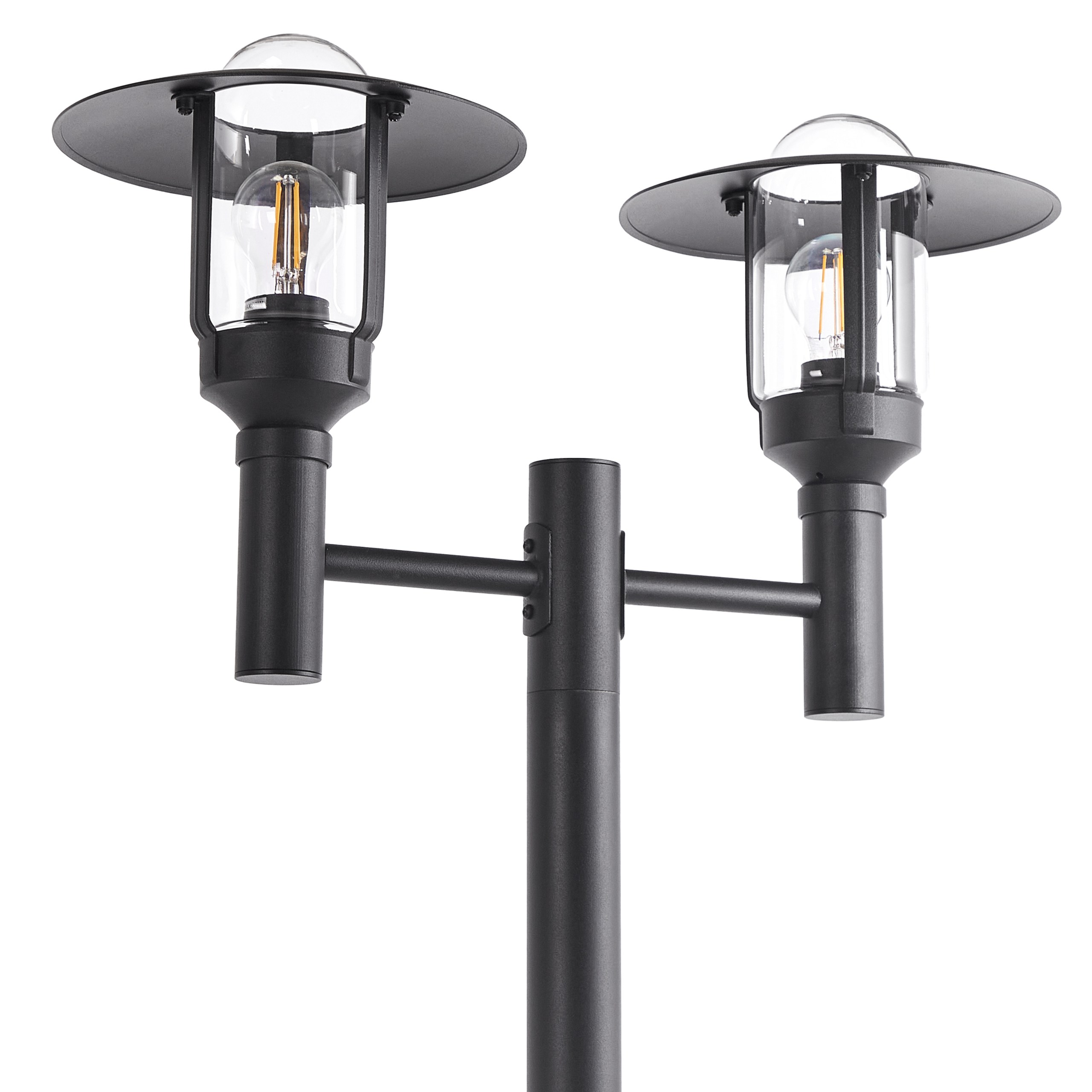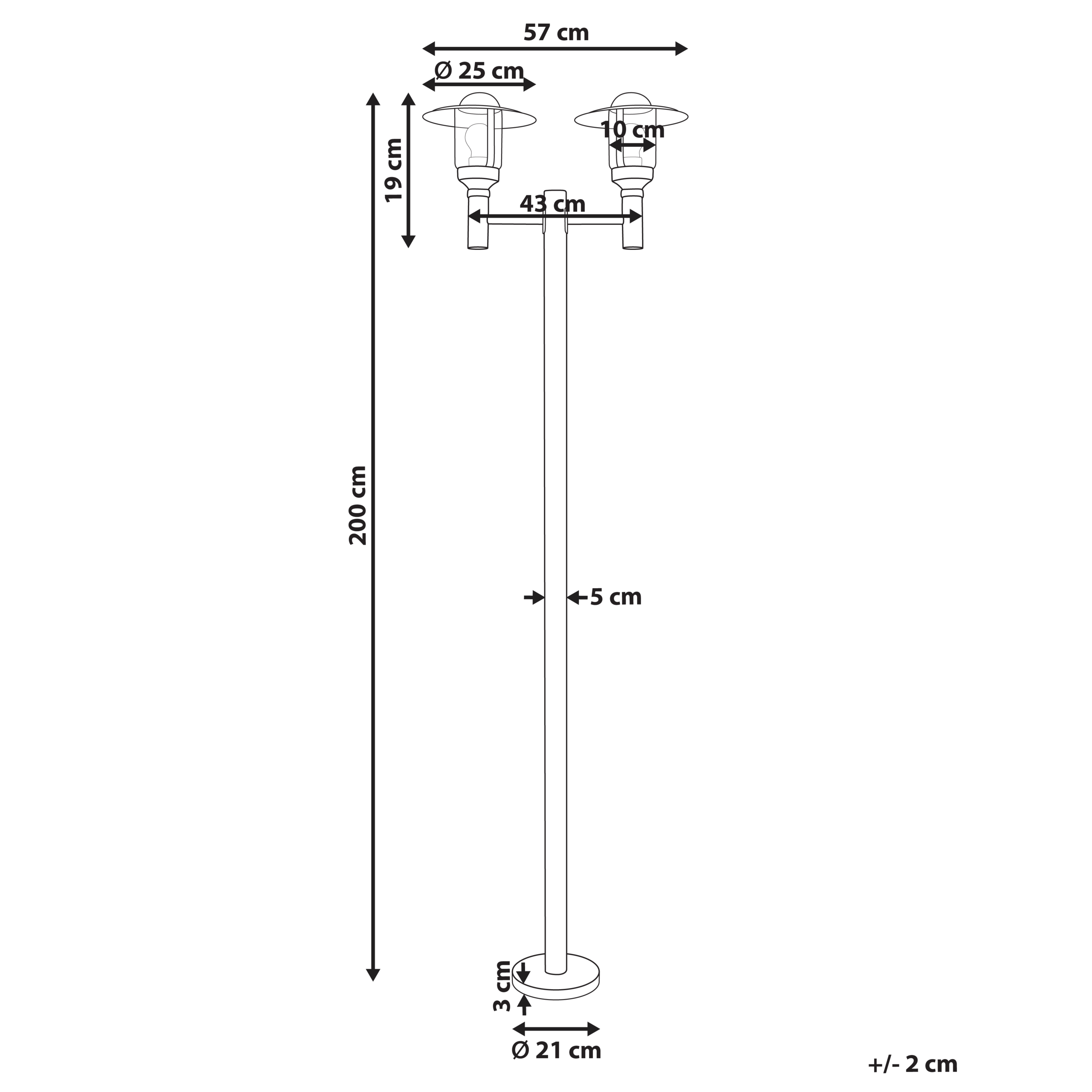 Puutarhavalaisin kahdella valolla. Valaise ulkotilaasi tällä modernilla lyhtypylväällä, joka on valmistettu alumiinista ja lasista, hienostuneella sekä kestävällä viimeistelyllä. Valaisin on suunniteltu kestämään erilaisia sääolosuhteita, ja vedenpitävän rakenteensa ansiosta se on täydellinen puutarhassa tai terassilla käytettäväksi. Vankkojen materiaalien yhdistelmä takaa sekä kestävyyden että nykyaikaisen tyylin, tarjoten luotettavan valaistuksen ja kohottaen samalla minkä tahansa ulkotilan esteettisyyttä.