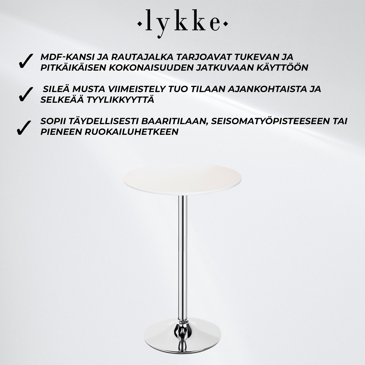 </ul><h4>Miksi valita Lykke Baaripöytä Comfort valkoinen 60x105cm?</h4>