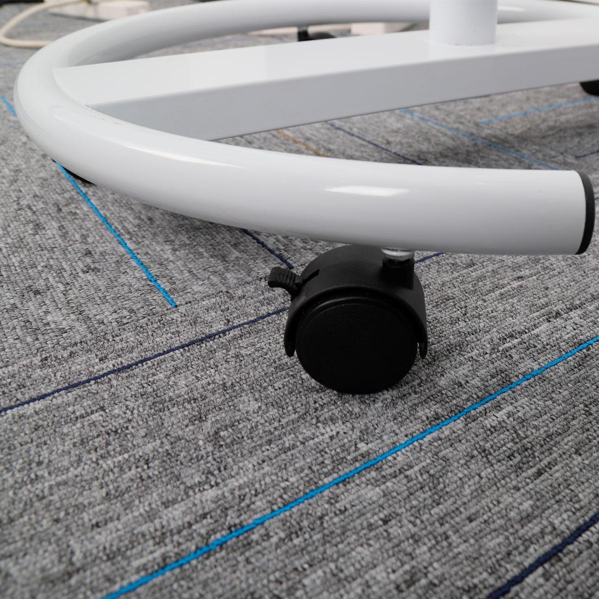 Mobiili pyöreän pohjan telineellä: Helppo liikkuvuus kokoustilojen välillä.