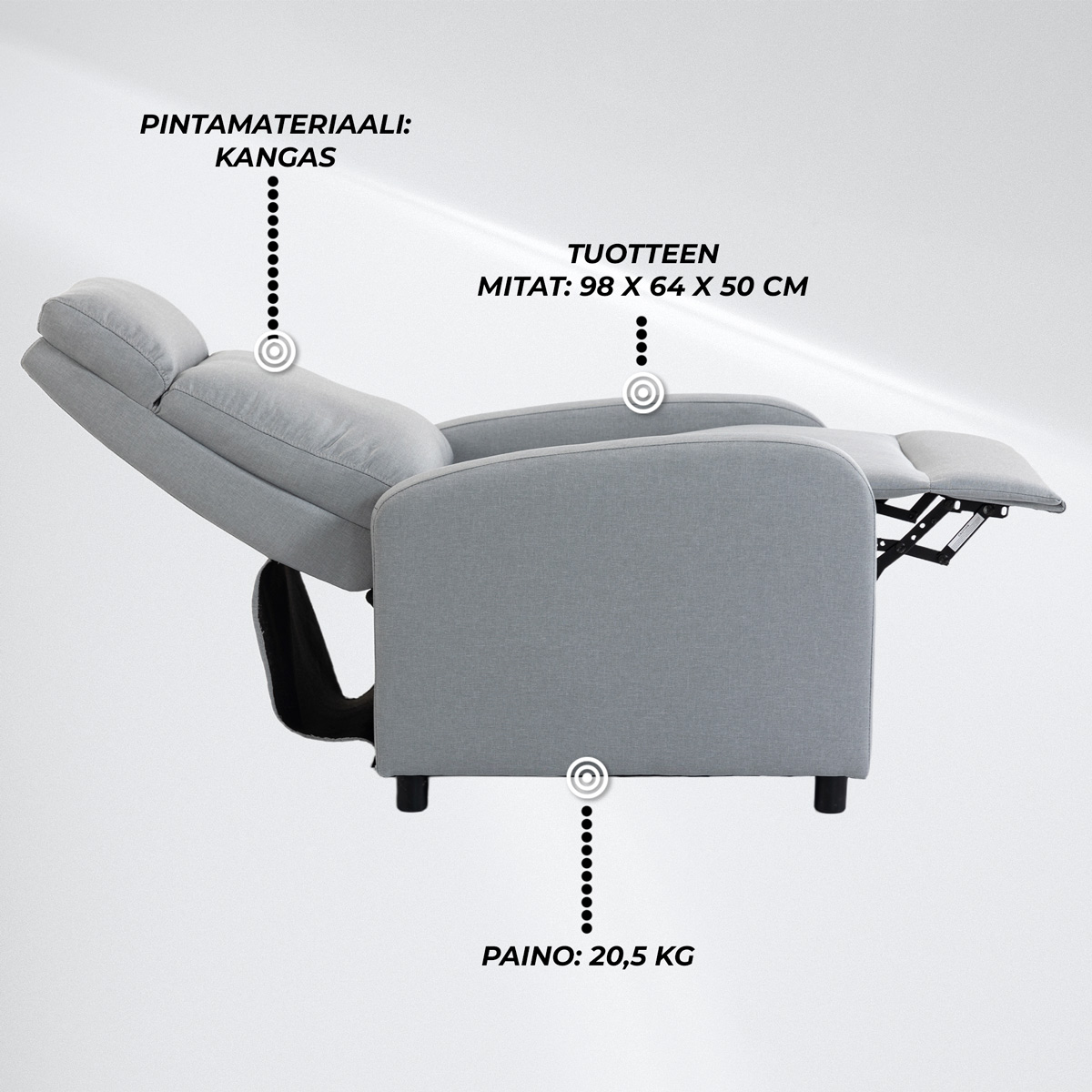 <li><strong>Push-back-kallistusmekanismi</strong> – Helppokäyttöinen kallistus ilman erillisiä säätimiä.</li>