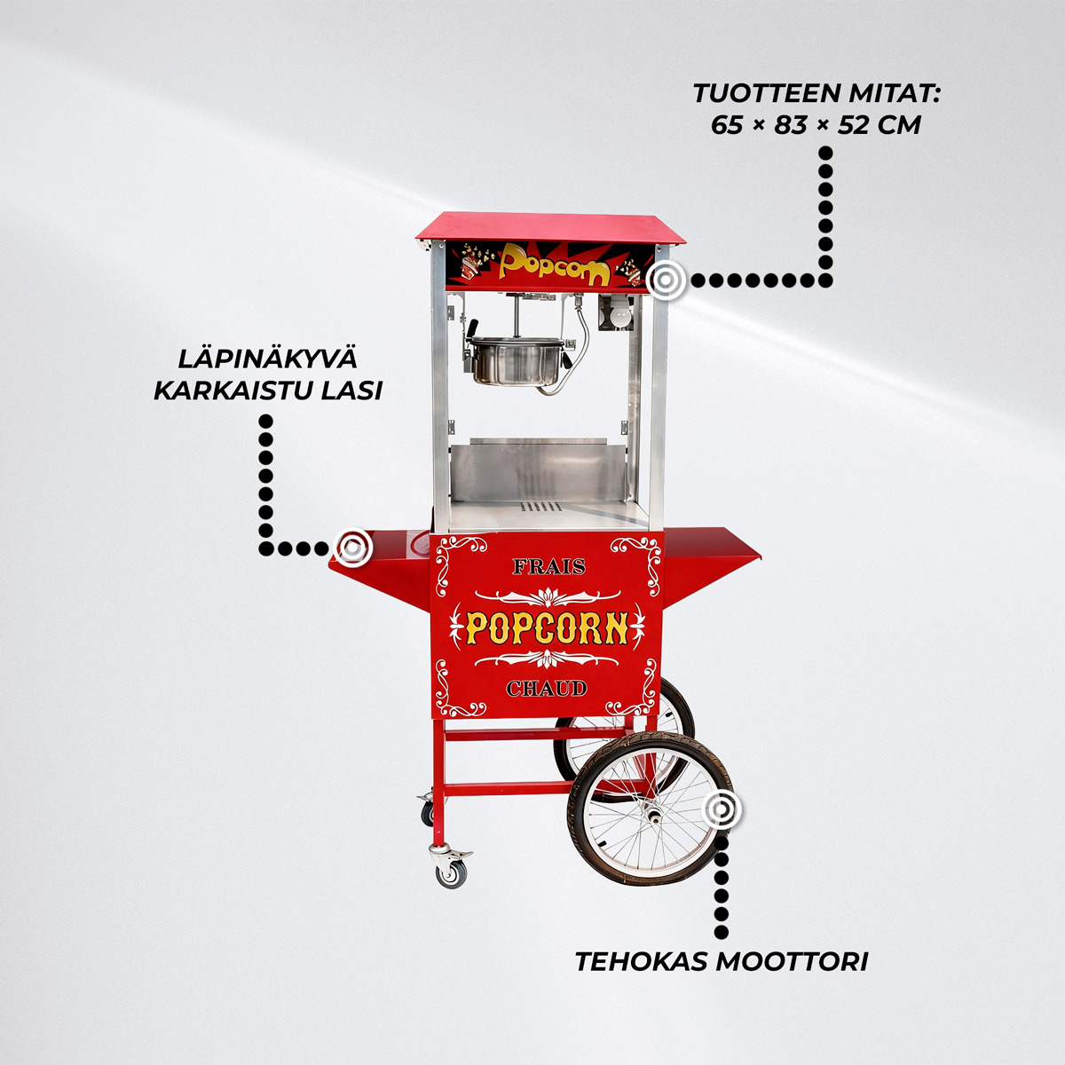 Popcornkoneet tekevät herkuttelusta elämyksen ja nostavat elokuvailtojen, juhlien ja tapahtumien tunnelman uudelle tasolle. Premium-tason popcornkone tarjoaa nopean valmistuksen, korkean kapasiteetin ja ammattimaisen lopputuloksen, jolloin tuoreet ja rapeat popcornit ovat valmiina vain minuuteissa.