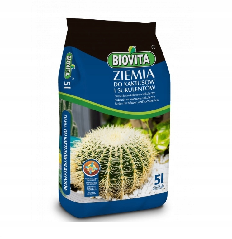 Biovita Soil kaktuksille ja mehikasveille 5Lon erikoisalusta, joka on suunniteltu kaktusten ja muiden mehikasvien istuttamiseen ja istuttamiseen.