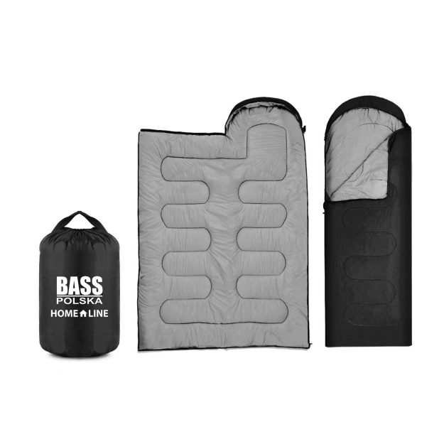 Makuupussi hupulla, 2-in-1 retkipeitto, musta