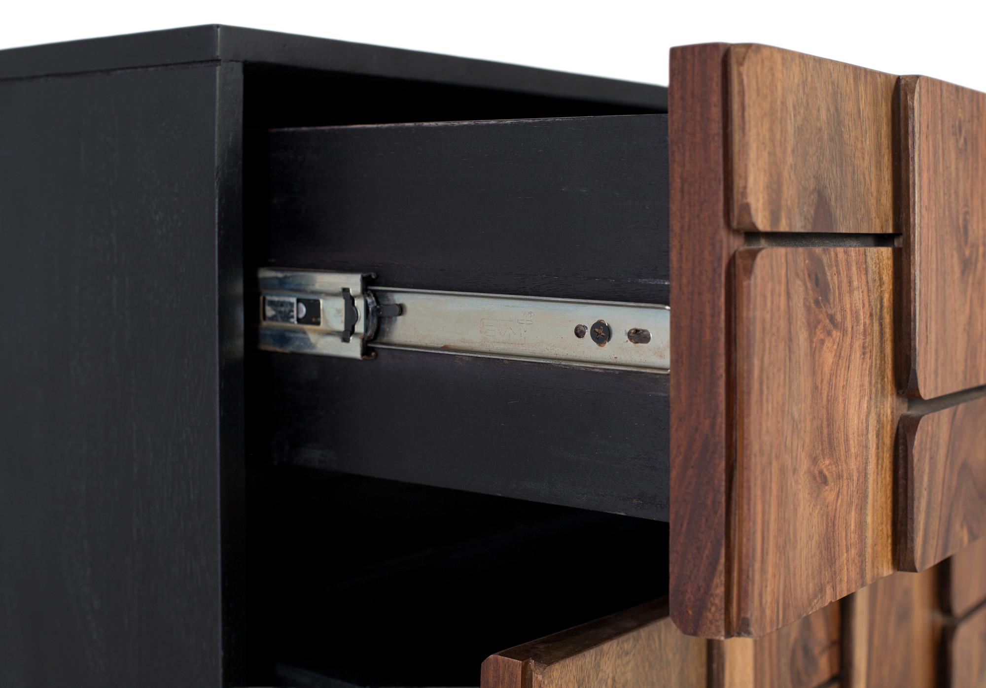Massiivimangopuinen lipasto metallirungolla