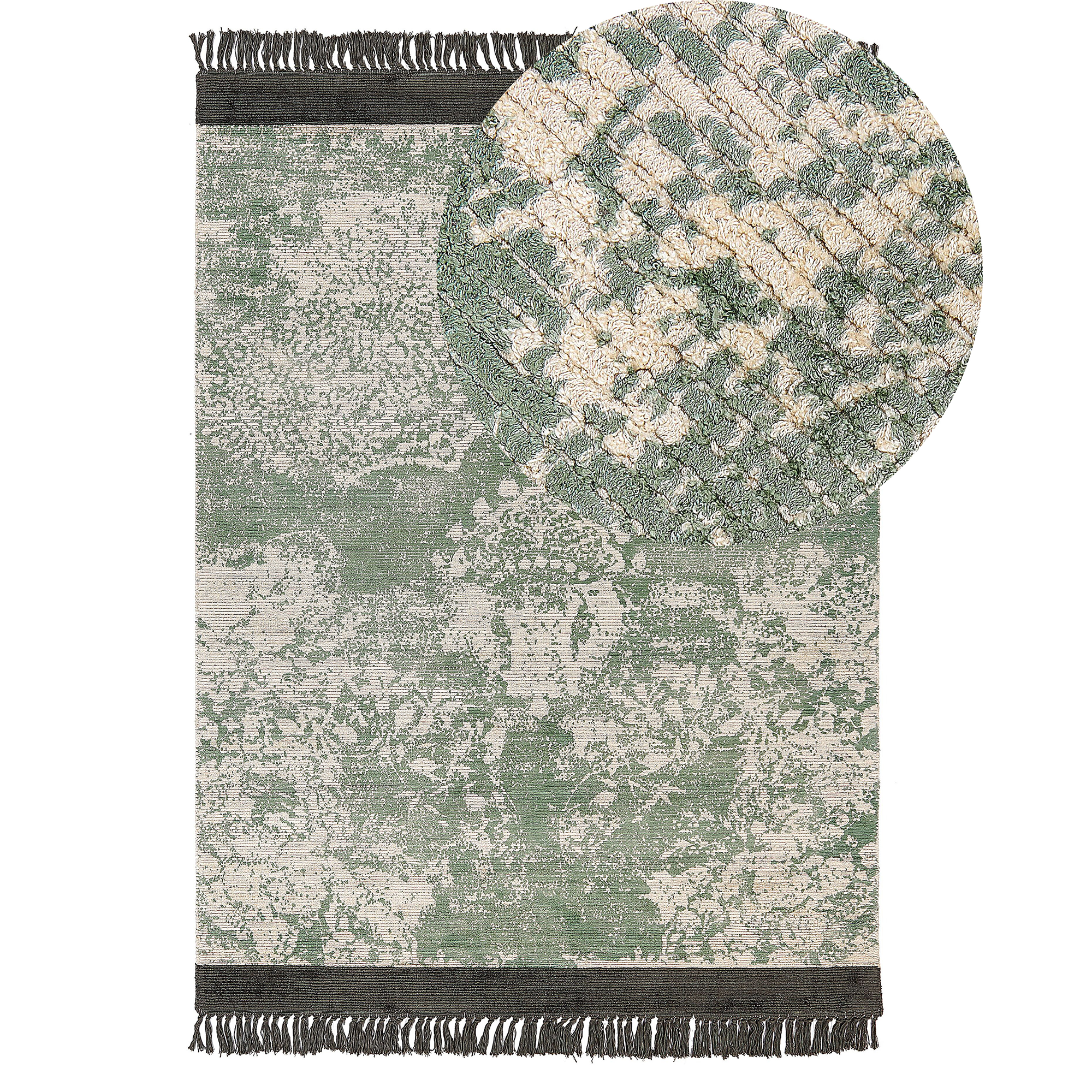 Vintage-tyylinen matto hapsuilla. Tämä retrotyylinen matto on loistava viimeistelevä koriste olohuoneeseen tai kodin muihin tiloihin. Matto on valmistettu kestävästä, mutta pehmeästä viskoosista, joka on helppo puhdistaa. Kulunut itämainen kuvio sekä mustat sivuissa sijaitsevat tupsut antavat matolle ripauksen boho-tyyliä. Vihreän ja beigen yhdistelmä tuo tilaan luonnollista tunnelmaa. Hurmaa vieraasi tällä katseita keräävällä matolla.