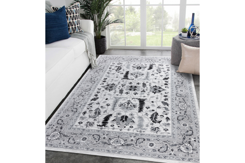 Matto ARGENT - W7039 Kukat harmaa / musta 133x190 cm