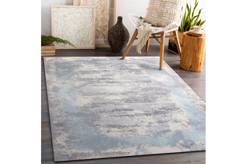 Matto CORE A004 varjostettu - rakenteellinen, kaksi kerrosta fleeceä, norsunluu / harmaa / sininen 80x150 cm