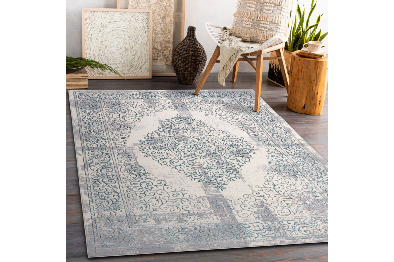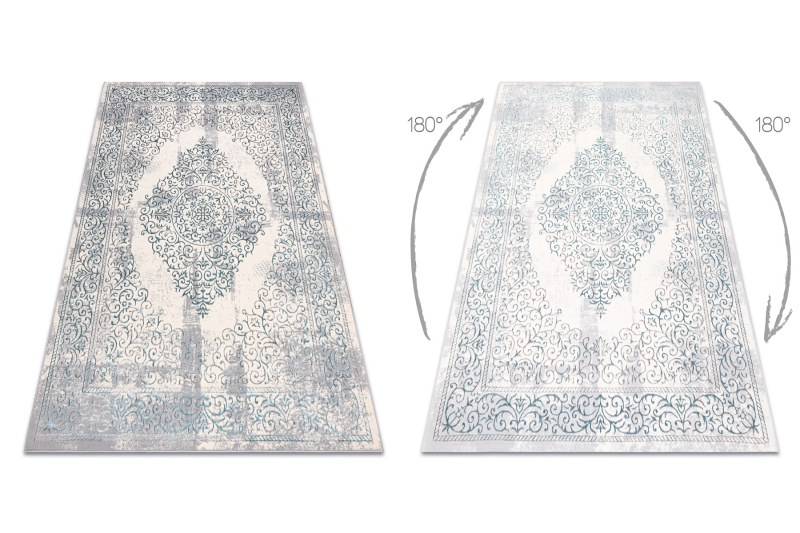 Matto CORE W7161 Rosetti Vintage - rakenteellinen, kaksi kerrosta fleeceä, vaaleansininen / kerma / harmaa 120x170 cm