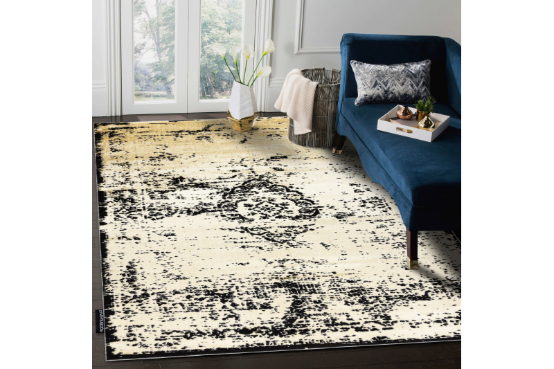 Matto DE LUXE moderni 2083 Ornamentti vintage pesty - Rakenteellinen kulta / harmaa 120x170 cm