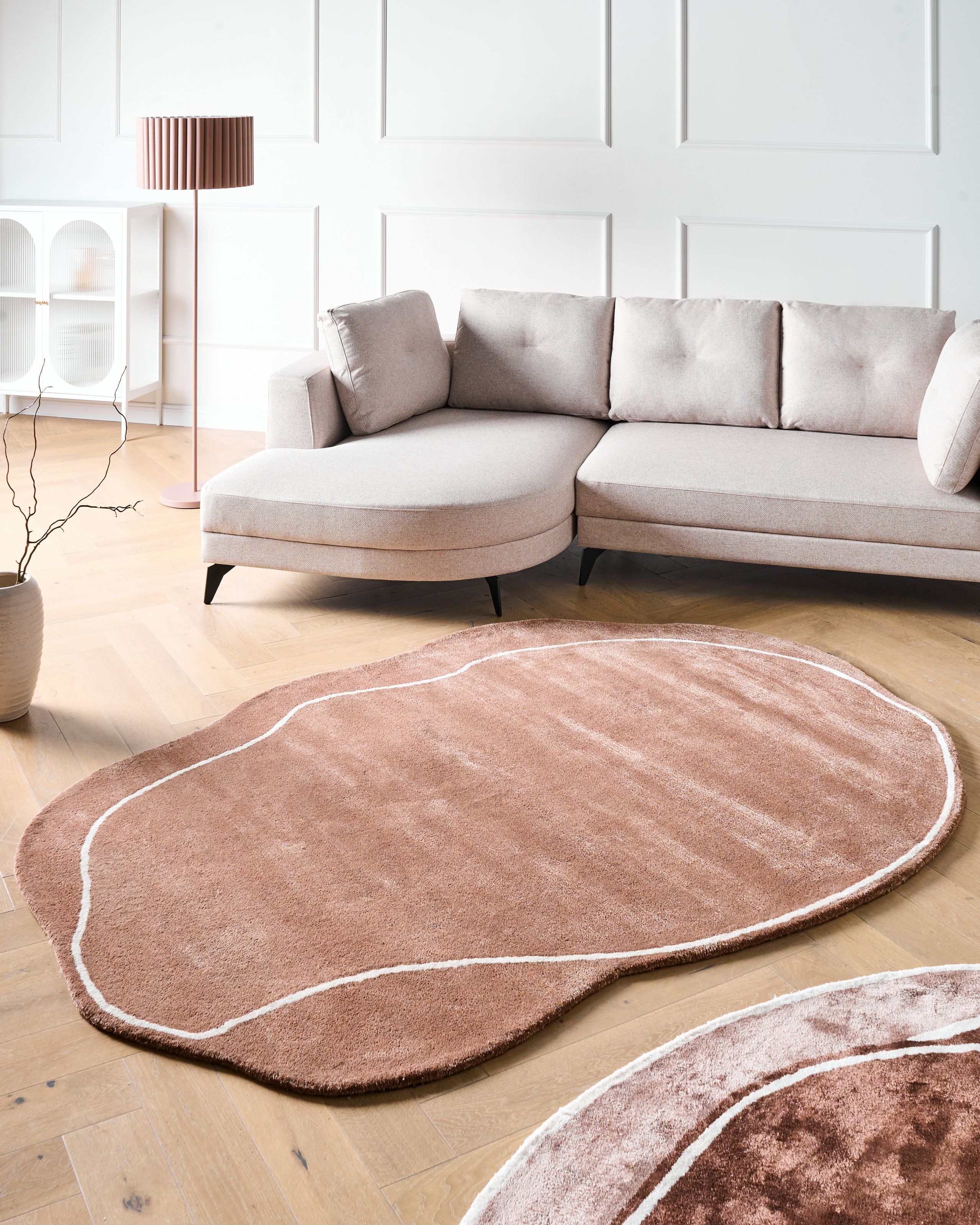 Moderni geometrisesti kuvioitu matto. Tuo sisustukseen erottuva lisä tällä ainutlaatuisella, käsin tuftatulla matolla. Laadukkaasta viskoosin ja villan sekoituksesta valmistettu matto on pehmeä ja miellyttävä koskettaa, ja se on myös melko kestävä ja vähän ylläpitoa vaativa, minkä ansiosta se koristaa tilaa vuosia ilman päivittäistä puhdistusta. Epäsäännöllinen muoto yhdessä valkoisen geometrisen kuvion kanssa tekee matosta todella ainutlaatuisen ja näyttävän, kun taas ruskea väri sulautuu vaivattomasti monenlaisiin moderneihin sisustuksiin.