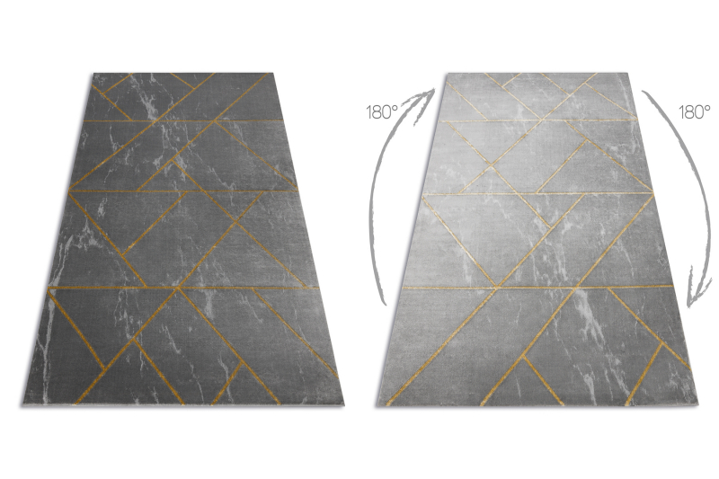 Matto EMERALD yksinomainen 1012 glamouria, tyylikäs geometrinen, marmori harmaa / kulta- 200x290 cm