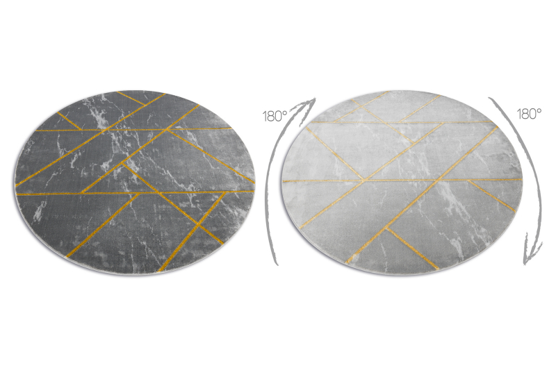 Matto EMERALD yksinomainen 1012 pyöreä - glamouria, tyylikäs marmori, geometrinen harmaa / kulta- pyöreä 120 cm