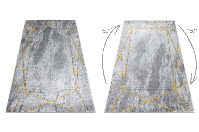 Matto EMERALD yksinomainen 1022 glamouria, tyylikäs geometrinen, marmori harmaa / kulta- 160x220 cm