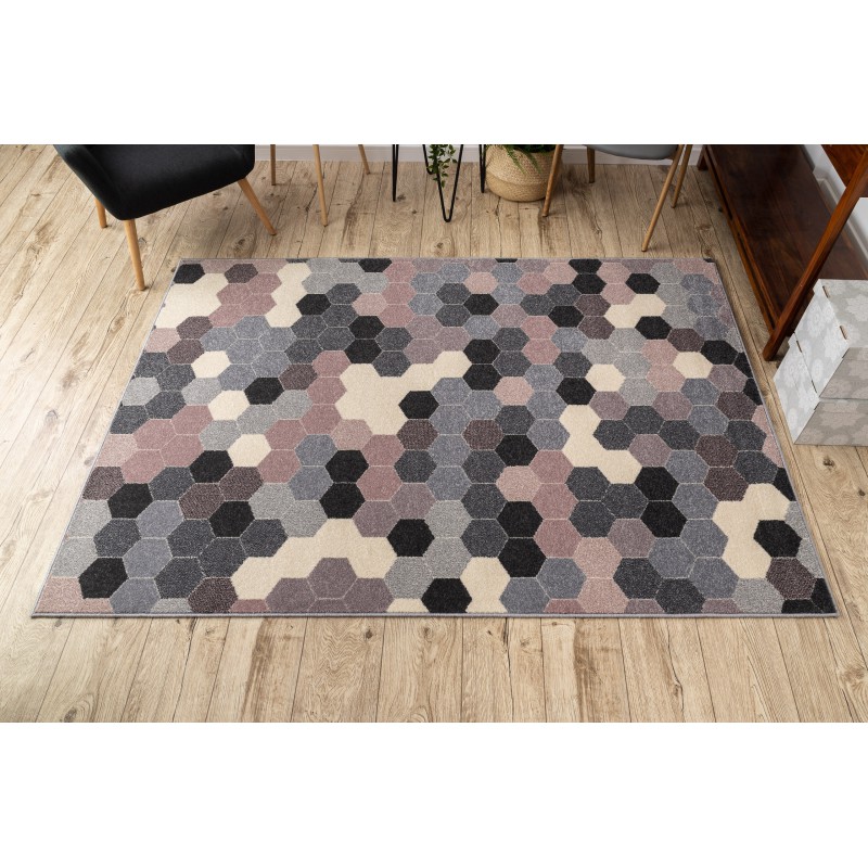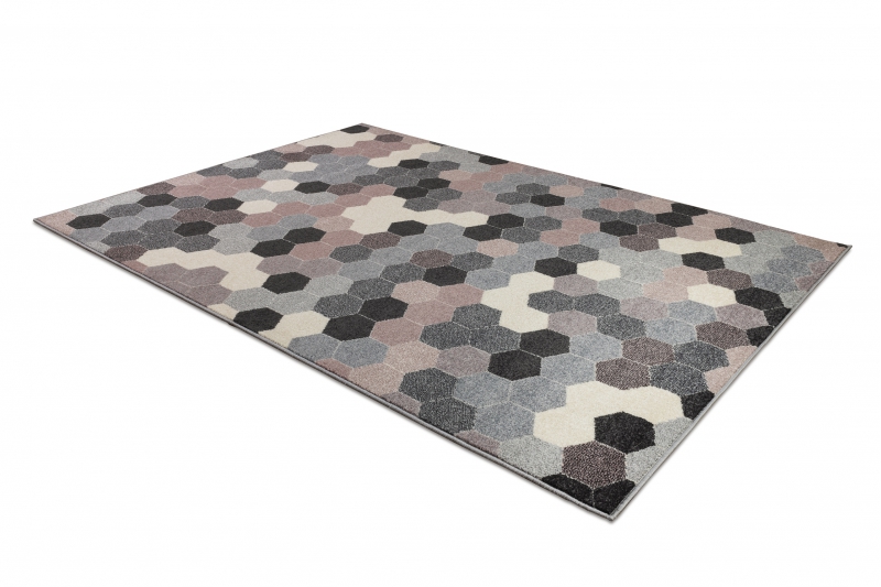Matto HEOS 78537 harmaa / vaaleanpunainen / kerma kuusikulmio 120x170 cm