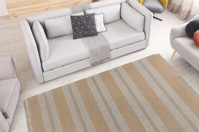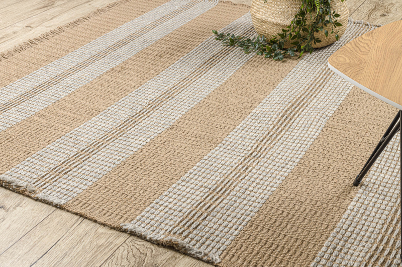Matto JUTE 3734 beige / harmaa raidat - juutti, litteä kudottu, 80x150 cm