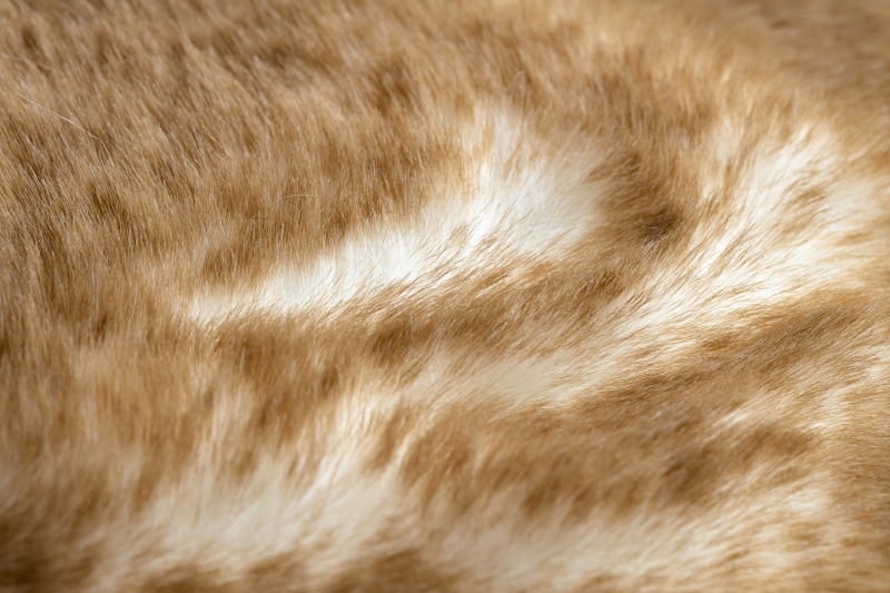 jossa jokainen yksittäinen säie on värjätty alapuolelta eri väriseksi kuin yläpuolelta, mikä luo visuaalisen vaikutelman, joka antaa vaikutelman aidosta jäniksen turkiksesta;