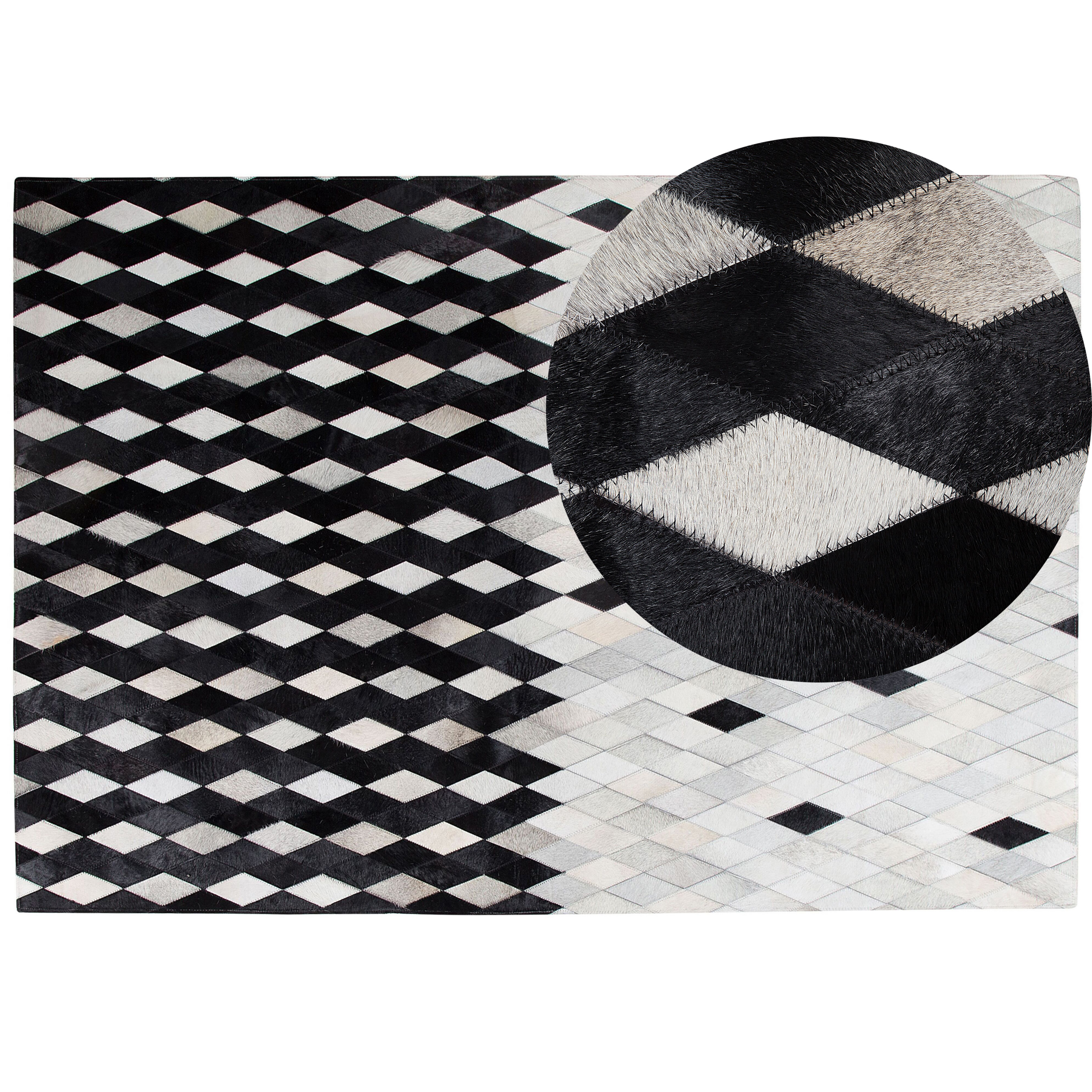 Moderni suorakulmainen nahkamatto. Geometrisen kuviointinsa ansiosta tämä matto näyttää upealta moderneissa sisustuksissa, erityisesti yksinkertaisissa sellaisissa. Timantin muotoiset tilkut on kudottu käsin, joten jokainen matto on uniikki, ja siten koko ja kuviointi saattaa hieman vaihdella. Huopapohja suojelee lattiaa naarmuilta, ja tuo matolle kestävyyttä.