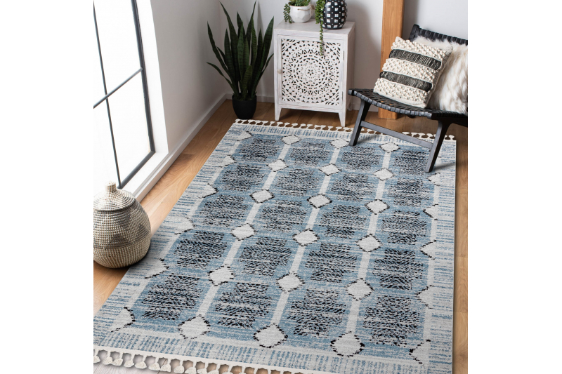 Matto moderni BELLE BR22A beige / sininen Tupsut 120x170 cm