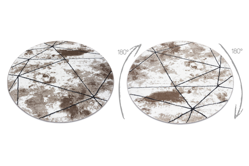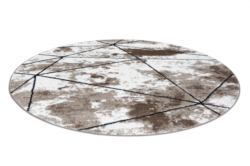 Matto moderni COZY Polygons Pyöreä Seinä, geometrinen, kolmiot - ruskea pyöreä 100 cm