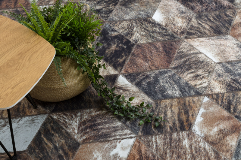 PATCHWORK-malliston matot ovat uusin tarjous ihmisille, jotka pitävät luonnon inspiroimista asusteista ja arvostavat käytännöllisiä ratkaisuja. Helposti puhdistettavassa tilkkumatossa on jäljitelty lehmännahkaa, jota käytetään yhä enemmän sisustussuunnittelussa. Lehmännahan esittely uudella tavalla tekee tästä kuviosta entistä nykyaikaisemman.