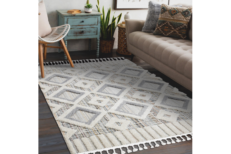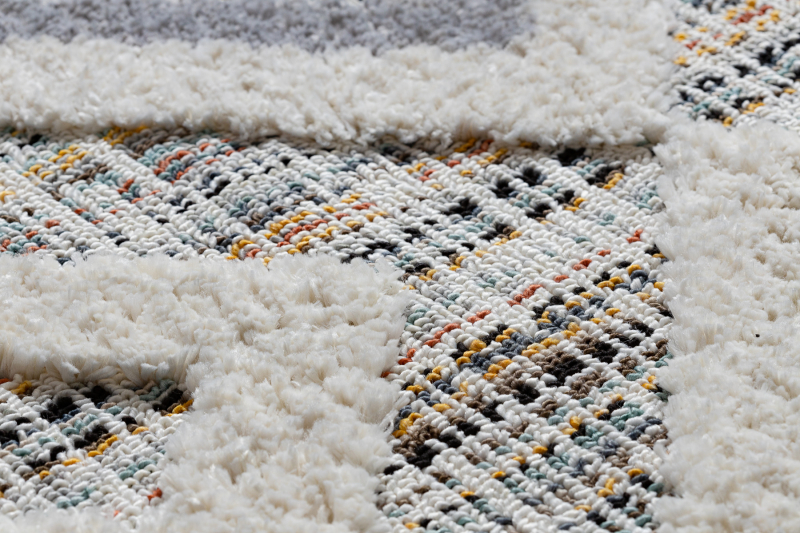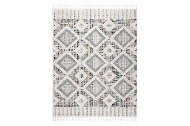 Matto SEVILLA Y523C rombit harmaa / keltainen Tupsut berbery Marokkolainen shaggy 120x170 cm