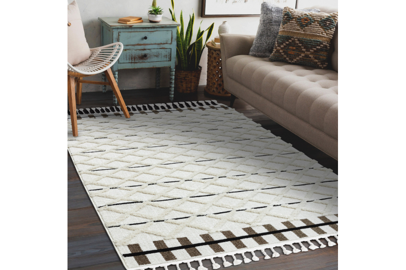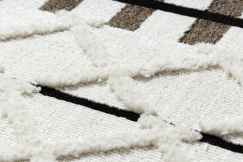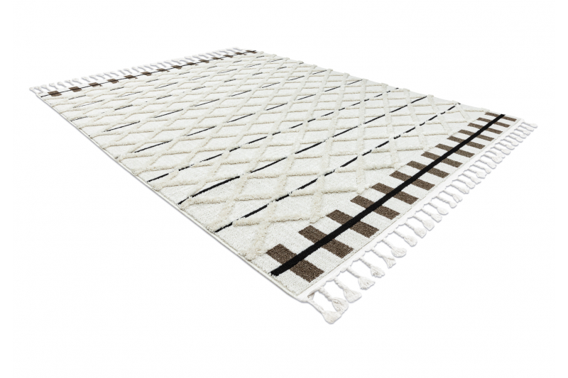 Matto SEVILLA Y611A säleikkö, rombit ruskea / valkoinen Tupsut berbery Marokkolainen shaggy 80x150 cm