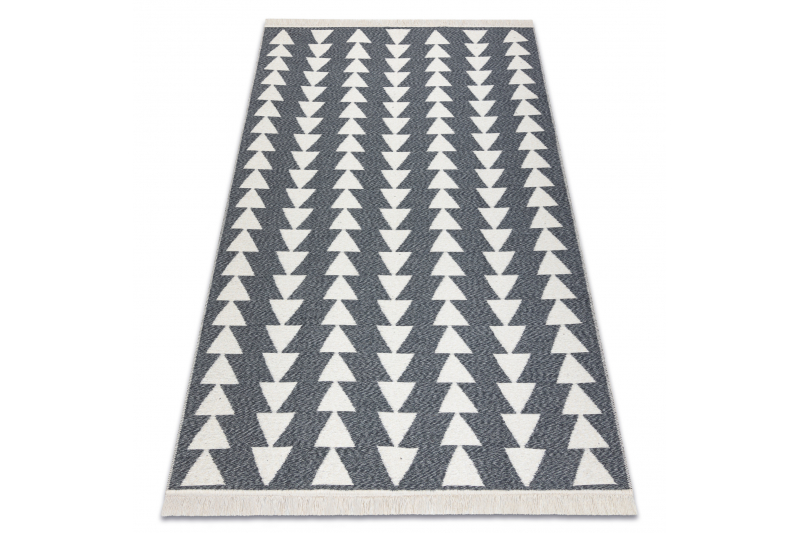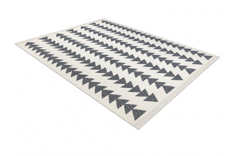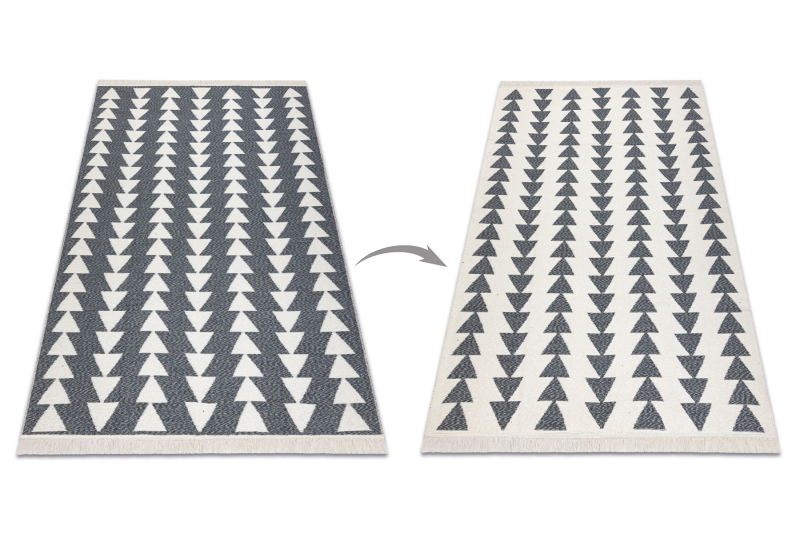 Matto TWIN 22994 geometrinen, kolmiot puuvilla, kaksipuolinen, Ekologiset - antrasiitti / kermanvärinen 120x170 cm