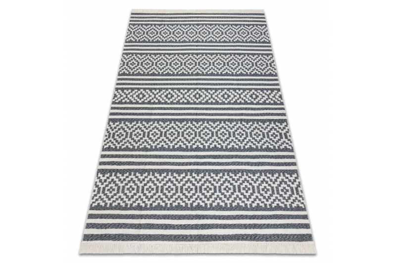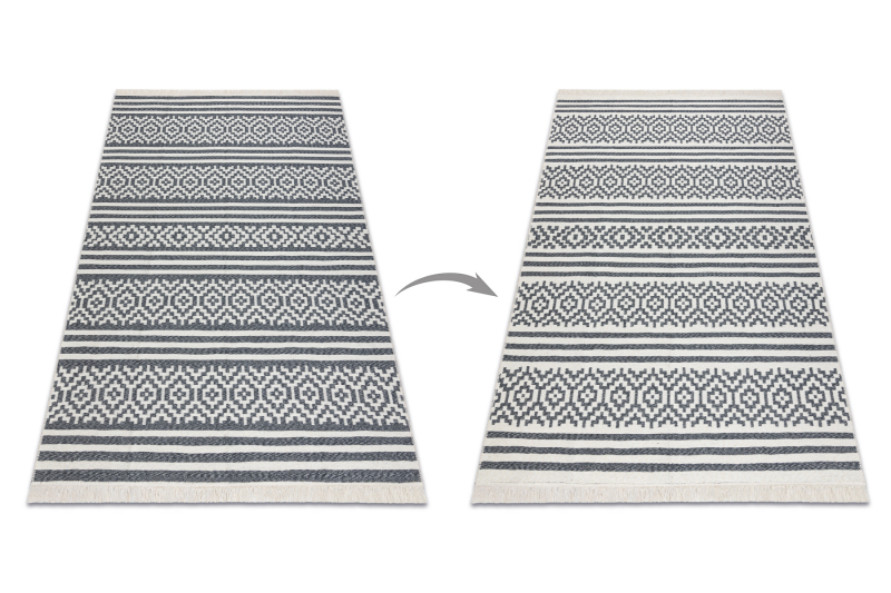 Matto TWIN 22996 geometrinen, raidat puuvilla, kaksipuolinen, Ekologiset - antrasiitti / kermanvärinen 100x200 cm