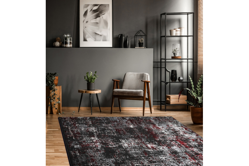 Matto VINCI 1524 moderni Ornamentti vintage pesty - Rakenteellinen antrasiitti / punainen 80x150 cm