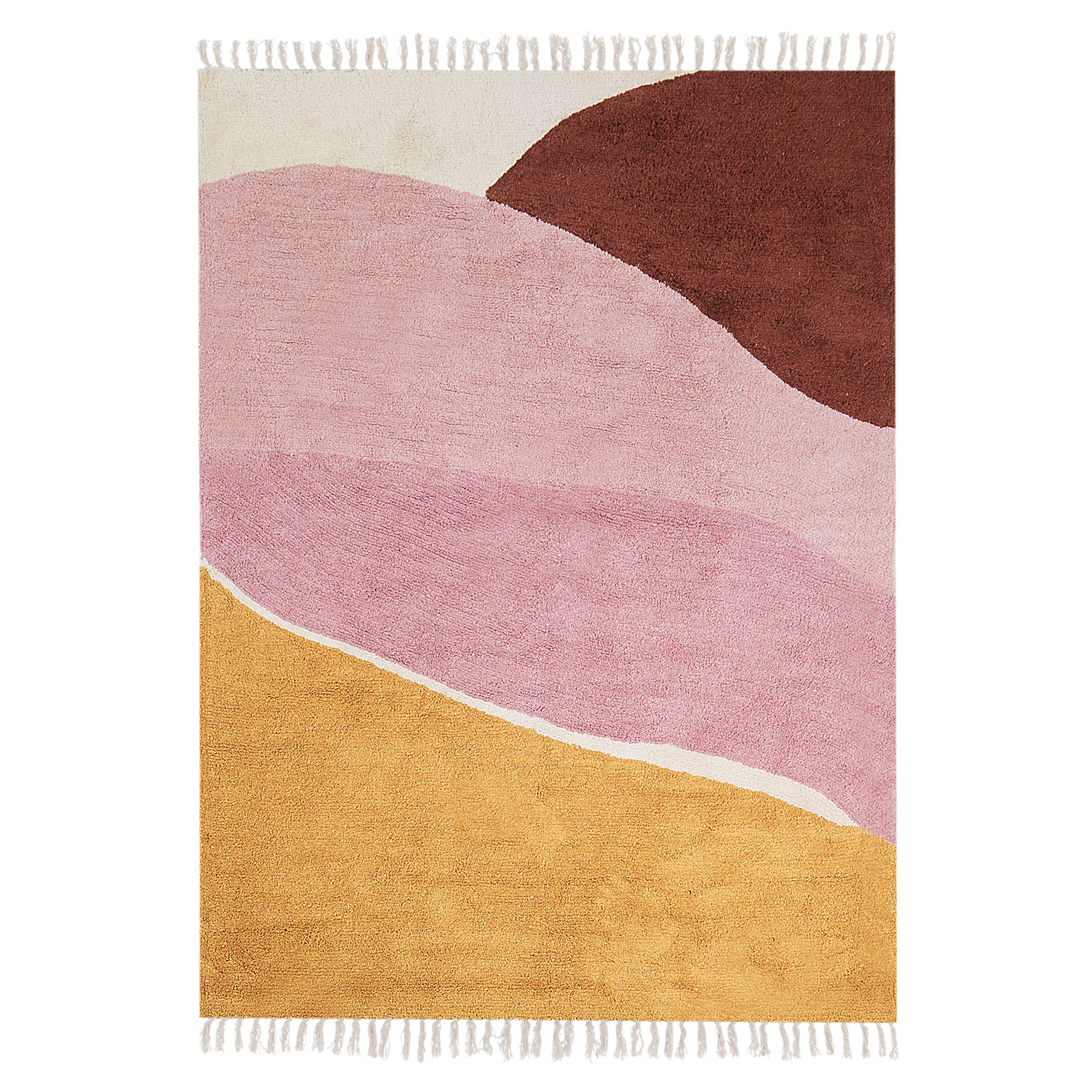 Abstrakti puuvillamatto hapsuilla. Uudista sisustusta tällä värikkäällä matolla, jota koristavat koristeelliset hapsut. Puuvillainen matto takaa kestävyyden, tyylikkyyden ja pehmeyden. Tämä helppohoitoinen ja monipuolinen elementti sopii erityylisin olohuoneisiin tai makuuhuoneisiin. Mattoa voi käyttää lattialämmitetyillä pinnoilla, taaten tyylikkyyden sekä käytännöllisyyden.