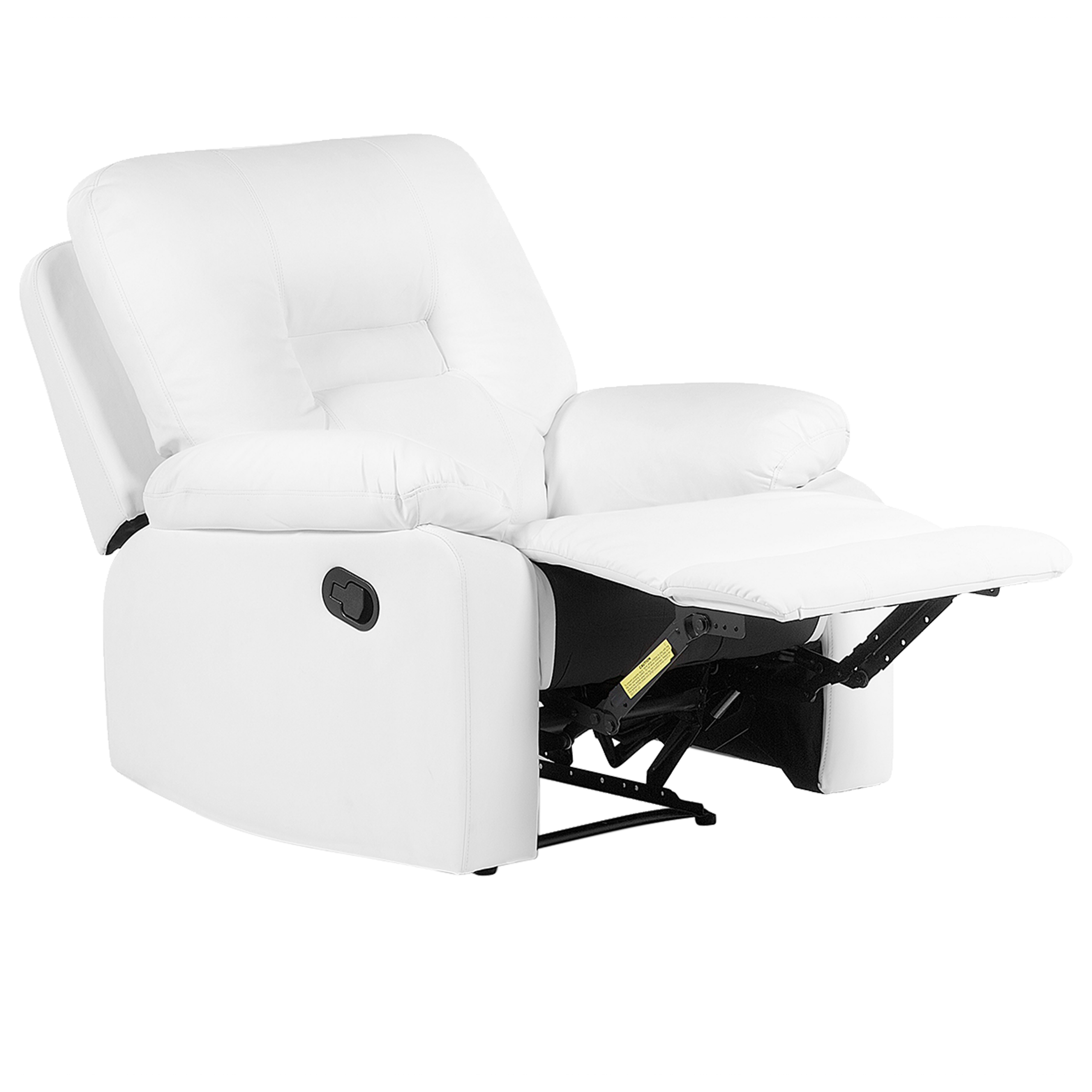 Mukava ja säädettävä nojatuoli valkoisesta keinonahasta. Nauti tämän nojatuolin mukavuudesta ja lyömättömästä mukavuudesta. Tässä tyylikkäässä sohvassa on säädettävä selkänoja, joka mukautuu vartalosi mukaan, ja siinä on jalkatuki, jolla voit muuttaa nojatuolin mukavaksi makuupaikaksi. Verhoilu on valmistettu helppohoitoisesta mustasta keinonahasta. Leveät käsinojat, korkea selkänoja ja miellyttävän tuntuinen materiaali takaavat lyömättömän istumismukavuuden.