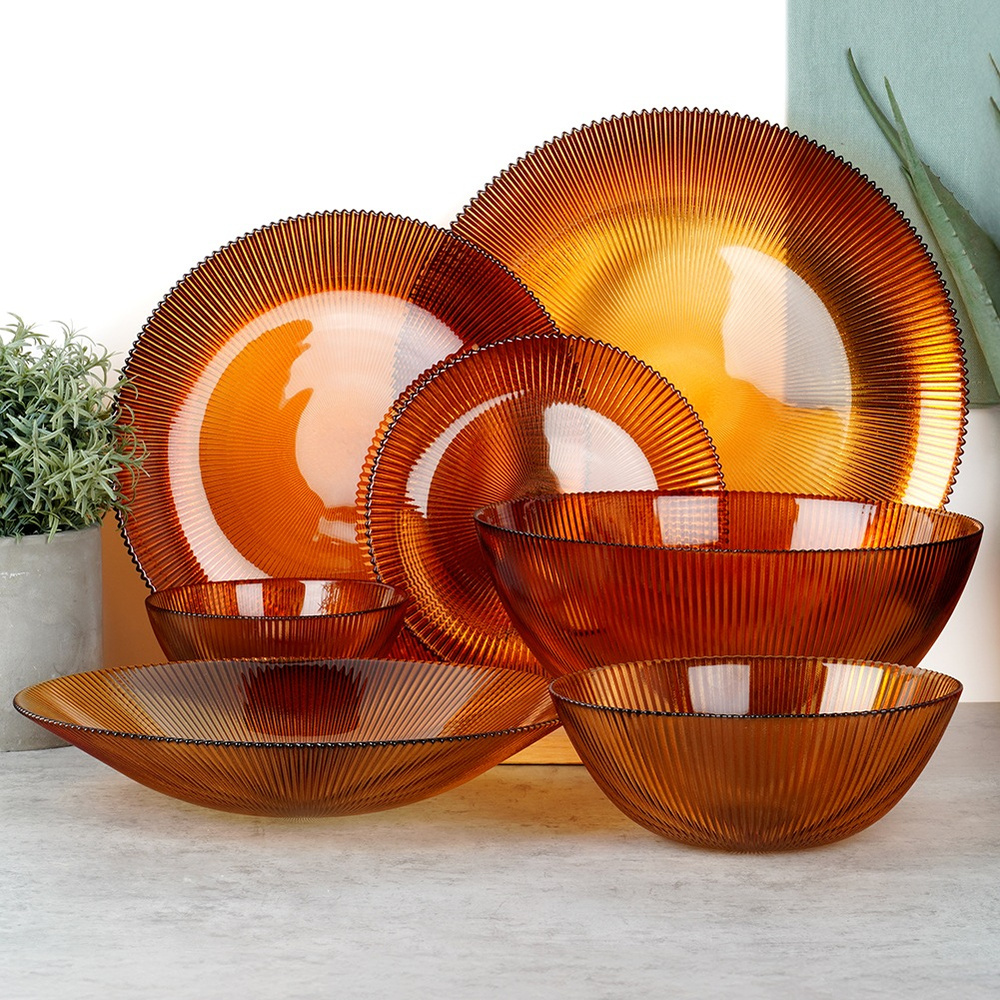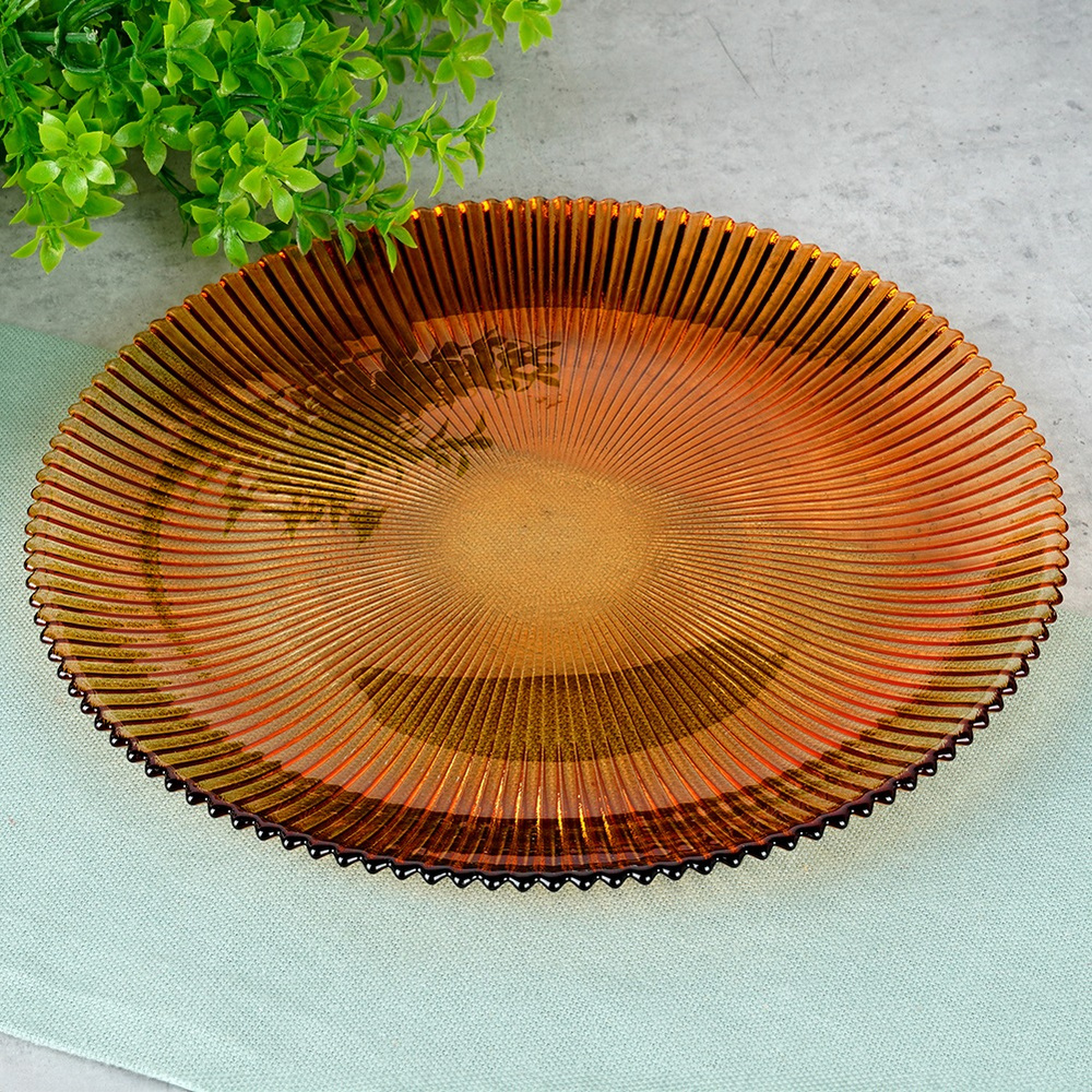 Valmistettu lasista - Valmistettu korkealaatuisesta meripihkanvärisestä lasista. Lautaselle on ominaista ainutlaatuinen keskeltä säteilevä sädekuvio, joka luo houkuttelevan ja tyylikkään ulkonäön. Oikein käytettynä se kestää useita vuosia.