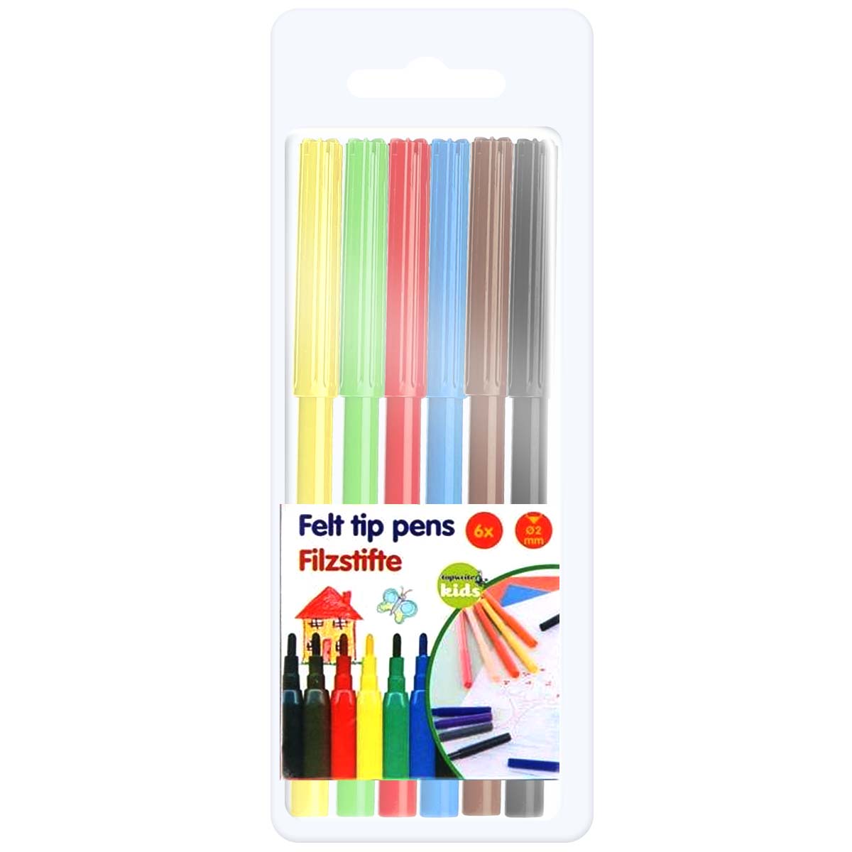 Tämä Topwrite-yhtiön 6 värillisen tussikynän setti on ihanteellinen tarkkaan piirtämiseen, kirjoittamiseen tai värittämiseen. Jokaisessa huopakynässä on noin 2 mm:n hieno kärki, joka takaa hyvän peittävyyden ja tasaisen levityksen. Kirkkaat värit stimuloivat lasten luovuutta, ja ne sopivat erinomaisesti myös askarteluun. Toimitetaan käytännöllisessä kotelossa, jossa on kahva ja snap-suljin. Sopii käytettäväksi 3-vuotiaista alkaen.