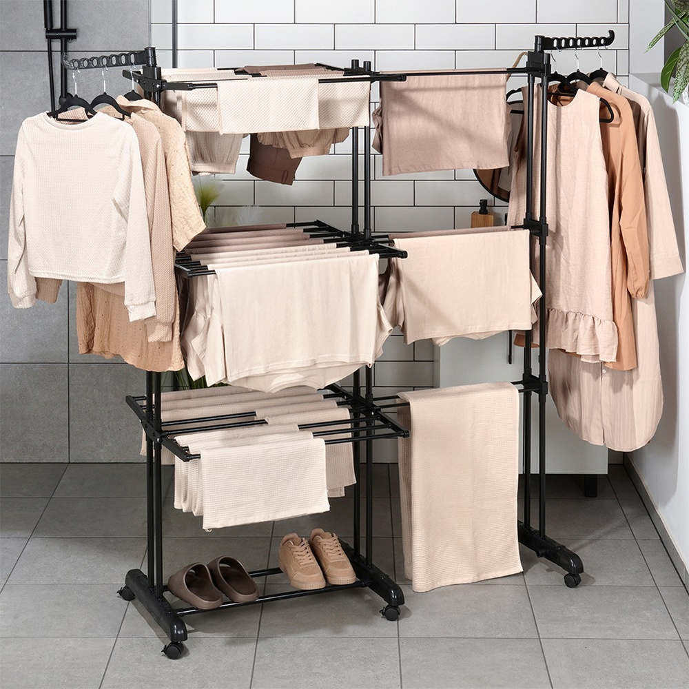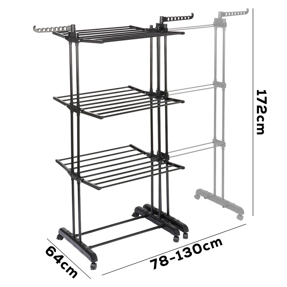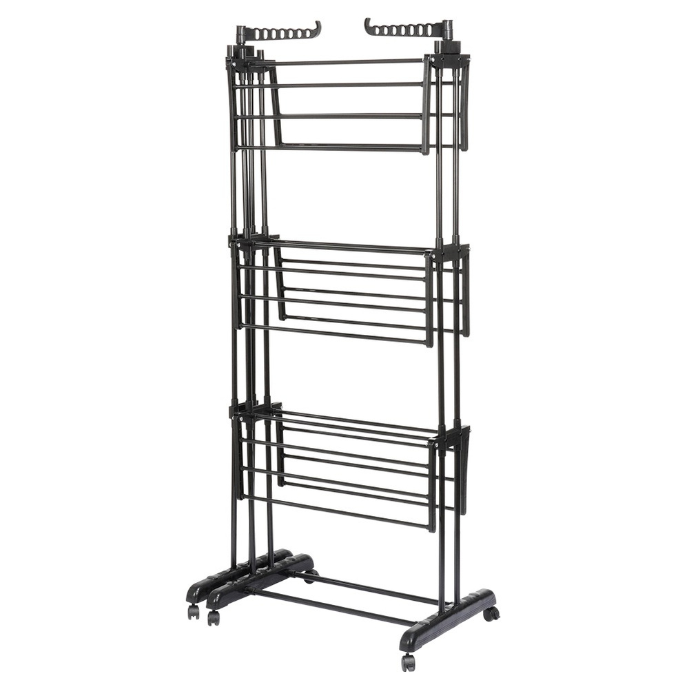 Metallinen musta pystysuora ulosvedettävä pyykkiteline XXL 78-130x64x172 cm