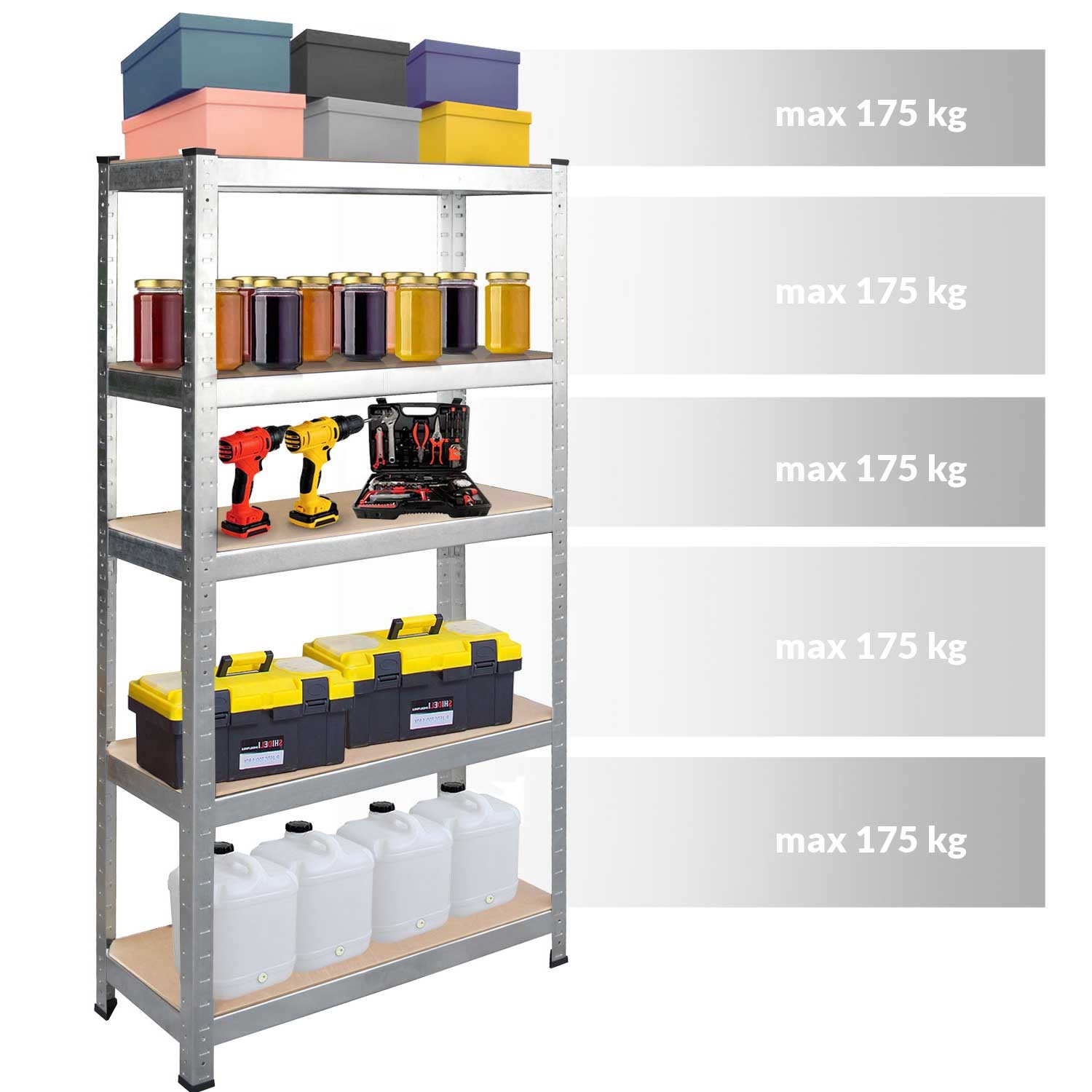 Hyllykkö koostuu viidestä hyllystä ja sen enimmäiskuormituskapasiteetti on 875 kg!