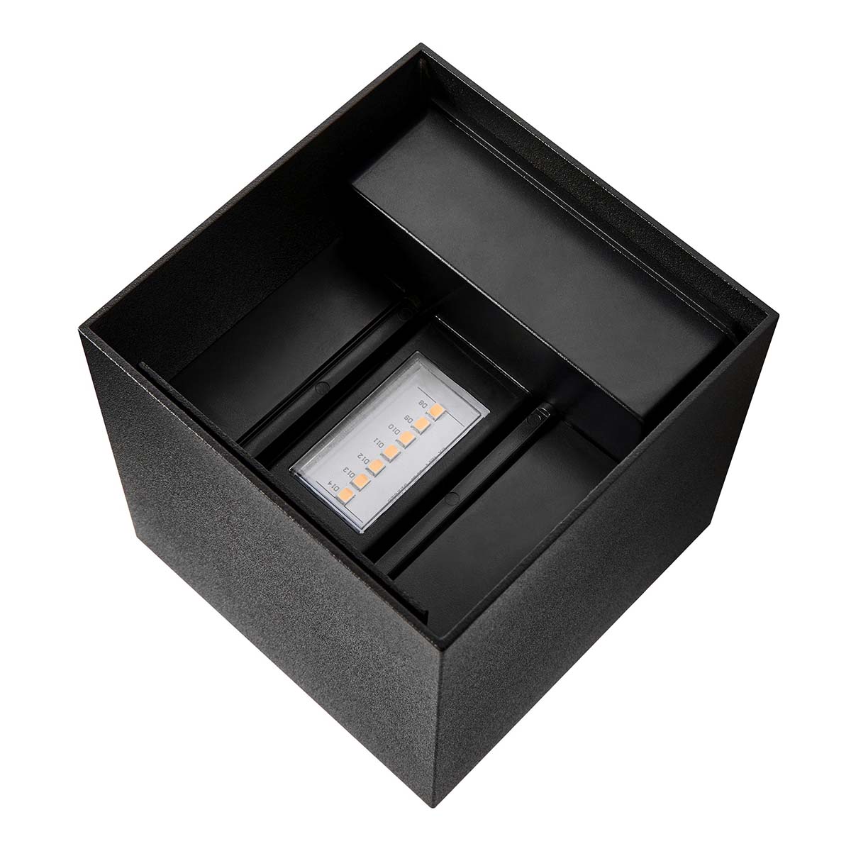 Tämä musta Milda Kubi -seinävalaisin levittää 290 lm valoa koristeellisilla valotehosteilla. Se sisältää LED-lähteen, joka optimoi valaistuksen ja vähentää samalla energiankulutusta. Se heijastaa valoa sekä ylös- että alaspäin. Se on yhteensopiva myös rinnankytkennän kanssa, ja sen IP54-suojausluokka tekee siitä roiske- ja pölytiiviin.