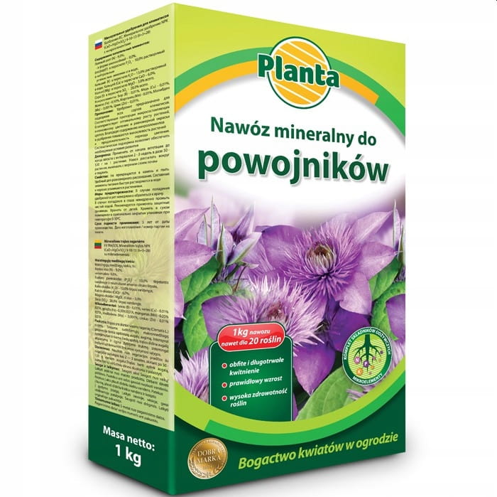 Tämä klematiksen mineraalilannoite on tehokas ratkaisu kaikille näiden kauniiden kasvien lajikkeille. Makroravinteiden oikean suhteen ansiosta lannoite varmistaa optimaalisen kasvun ja parantaa kasvien terveyttä, mikä tarkoittaa intensiivistä ja pitkäkestoista kukintaa. 1 kg verkkopakkaus sisältää kaiken, mitä tarvitset pitääksesi klematisi kauniina läpi kauden.