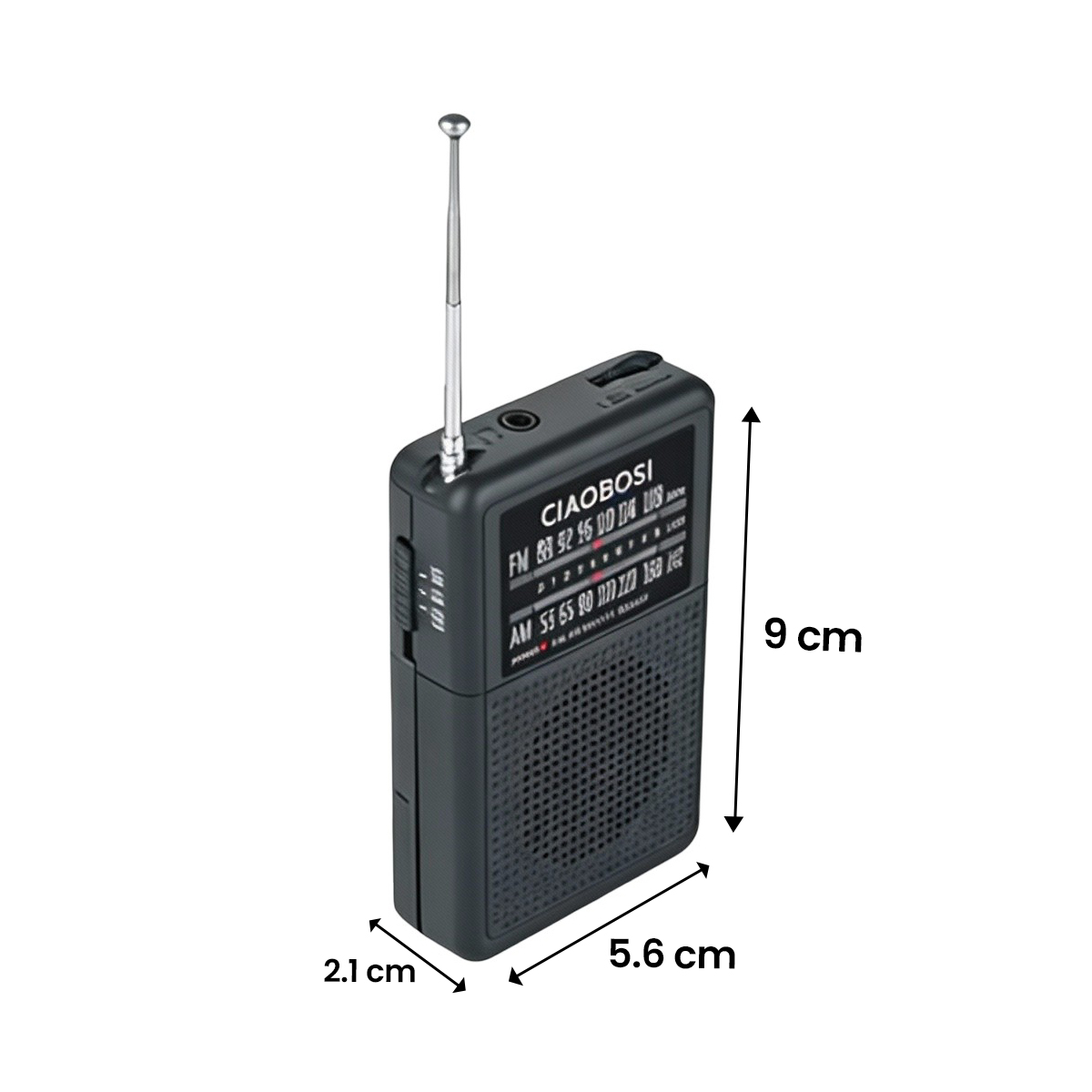 Mini taskuradio FM- ja AM-taajuuksilla, teleskooppiantenni ja kuulokeliitäntä