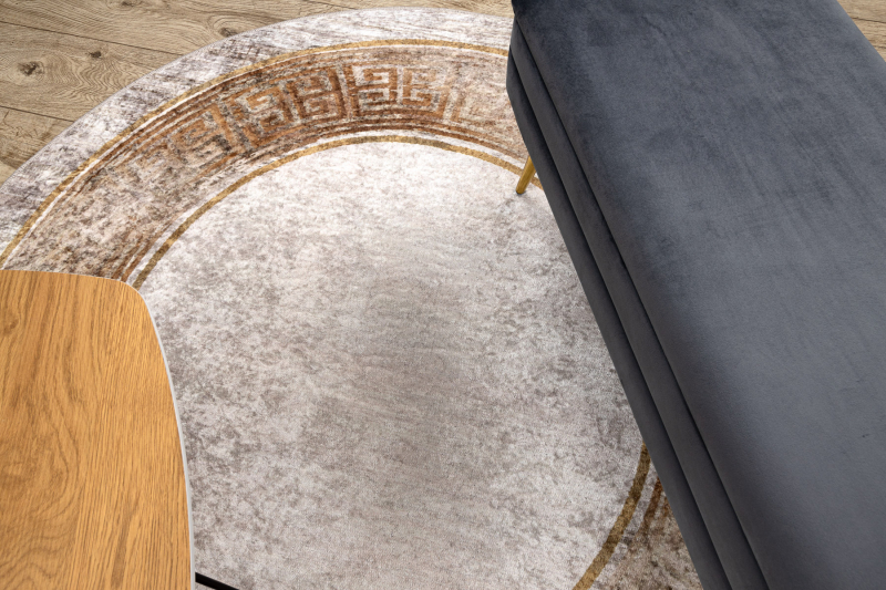 MIRO 51236.807 pyöreä matto Marmori, kreikkalainen liukumaton - beige / kulta pyöreä 200 cm