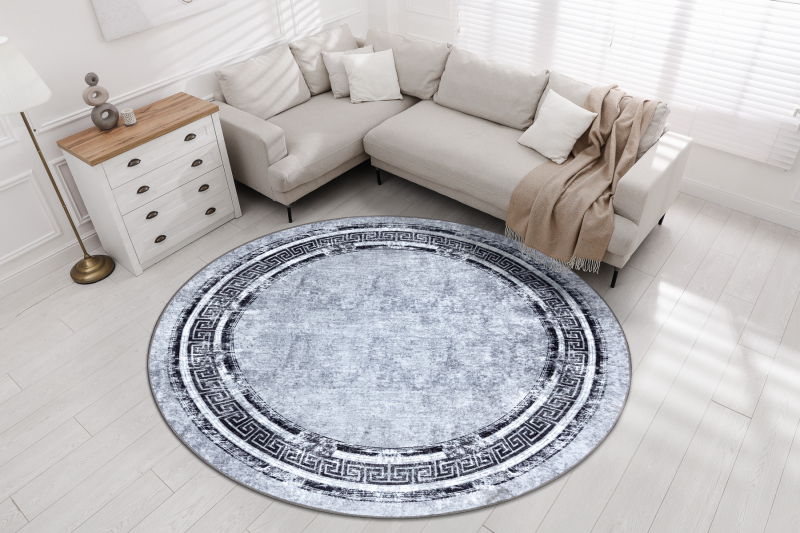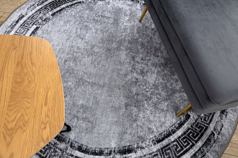 MIRO 51254.802 pyöreä matto Marmori, kreikkalainen liukumaton - harmaa / musta pyöreä 120 cm