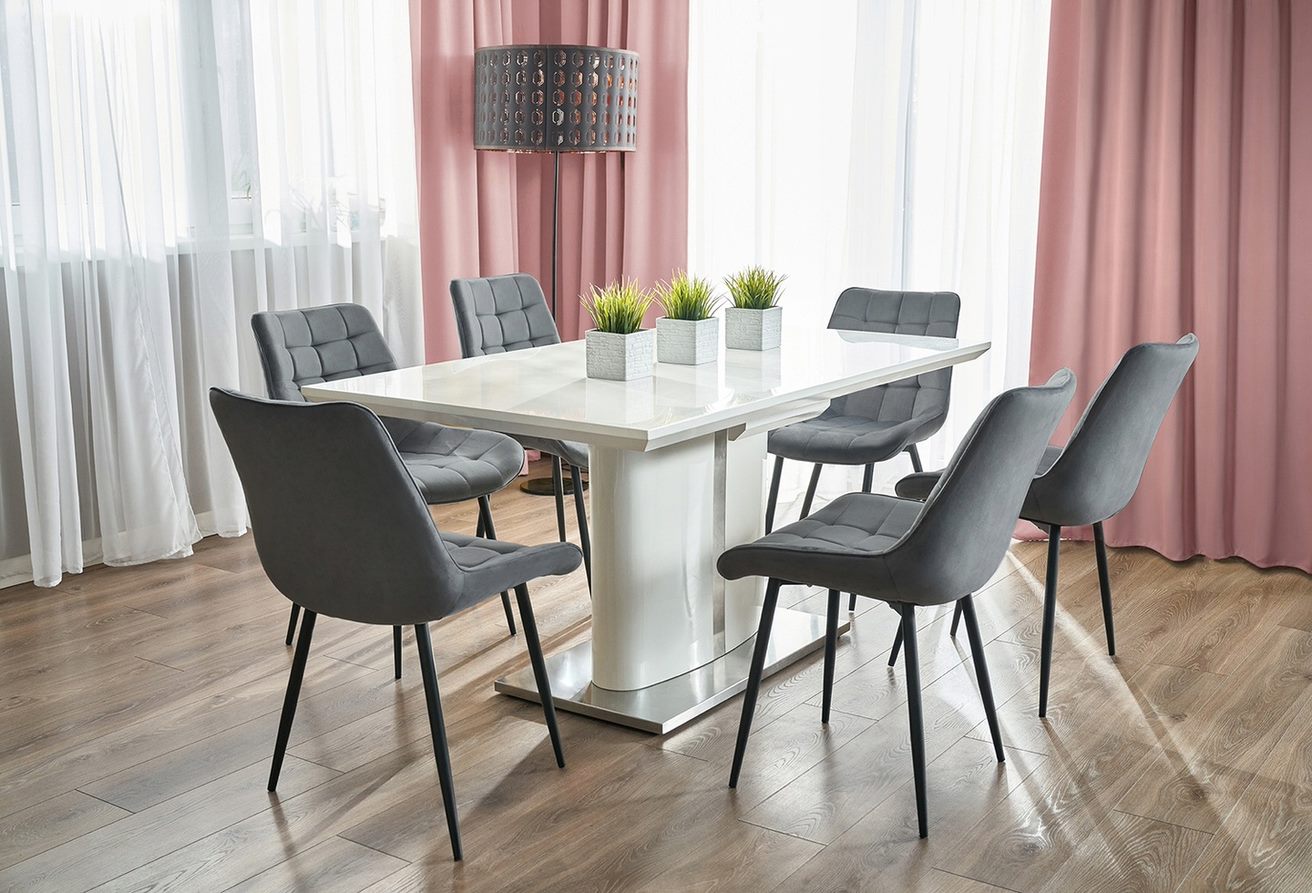 MISTY-tuoli on pienen nojatuolin luonteinen, ja sille on ominaista pehmeä, tikattu istuin, joka myötäilee vartaloa. Samettiverhoilu velourista näyttää erittäin herkältä, ja korkeat, hoikat mustat jalat antavat tyylikkyyttä ja täydellisen vakauden.