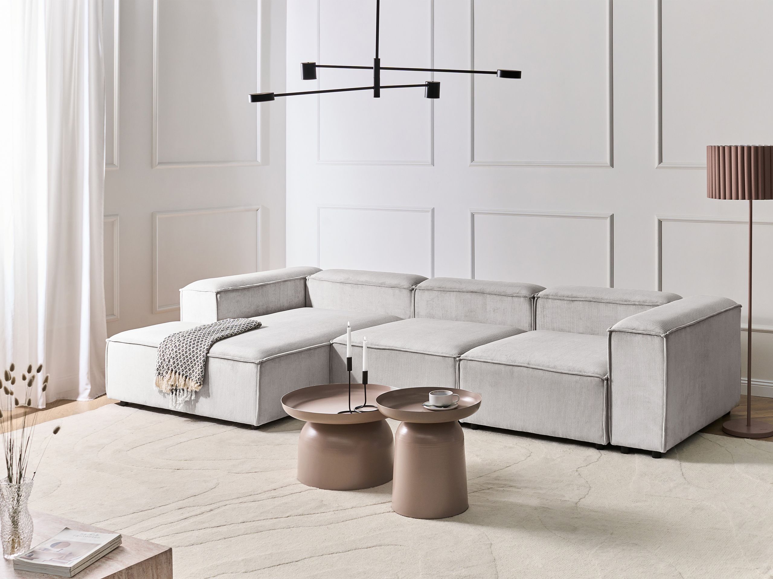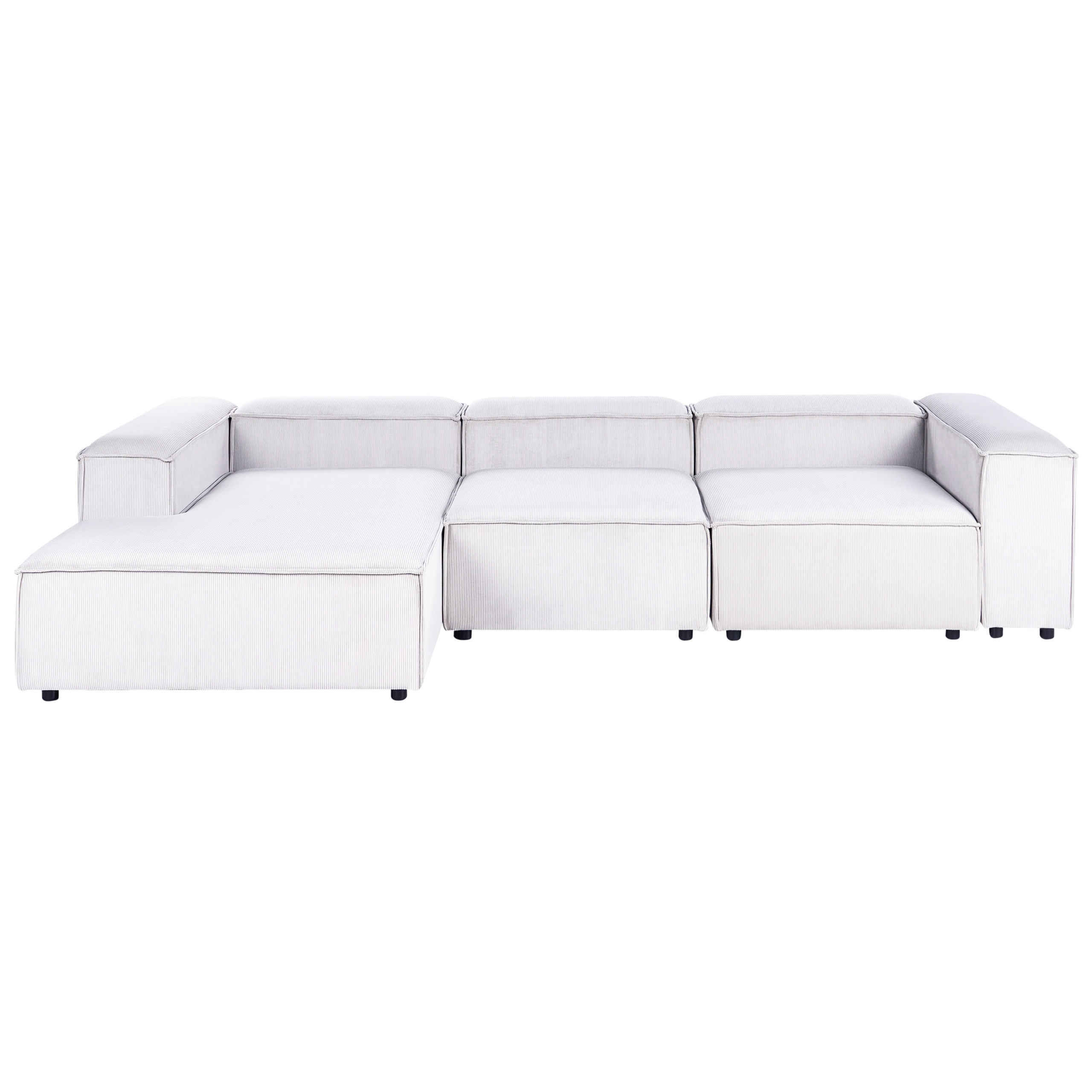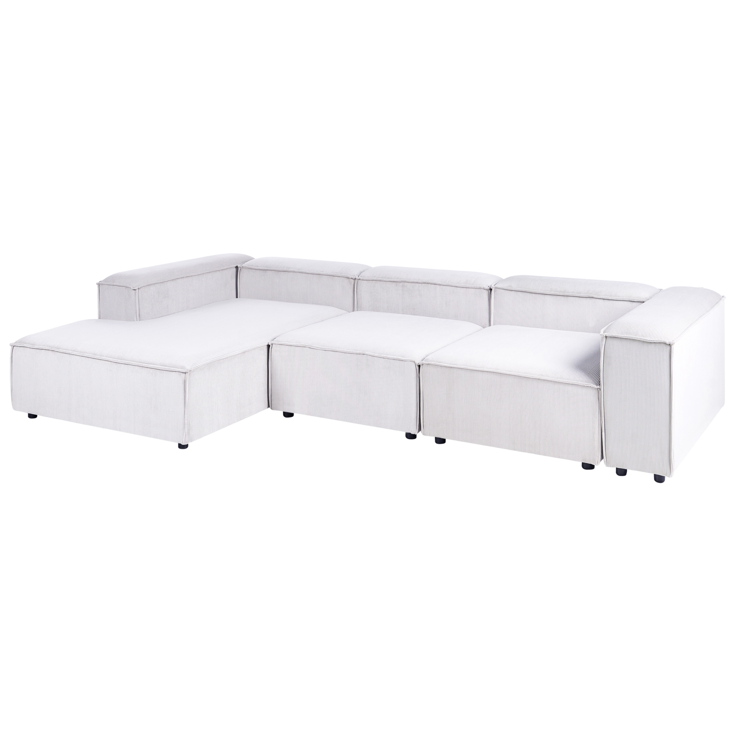 Moderni modulaarinen kulmasohva. Päivitä olohuoneen sisustusta ja tee sitä kodin tyylikkäin oleskelupaikka tällä moduulikulmasohvalla. Pehmeällä ja laadukkaalla vakosametilla verhoillussa kulmasohvassa on kestävä puurakenne ja tukevat mustat synteettiset jalat. Herttainen luonnonvalkoinen sävy saa sen sulautumaan täydellisesti mihin tahansa moderniin tai perinteiseen sisustukseen. Moduulisohva koostuu kolmesta moduulielementistä, jotka voidaan asettaa yhteen tai erikseen ainutlaatuisten kokonaisuuksien luomiseksi.