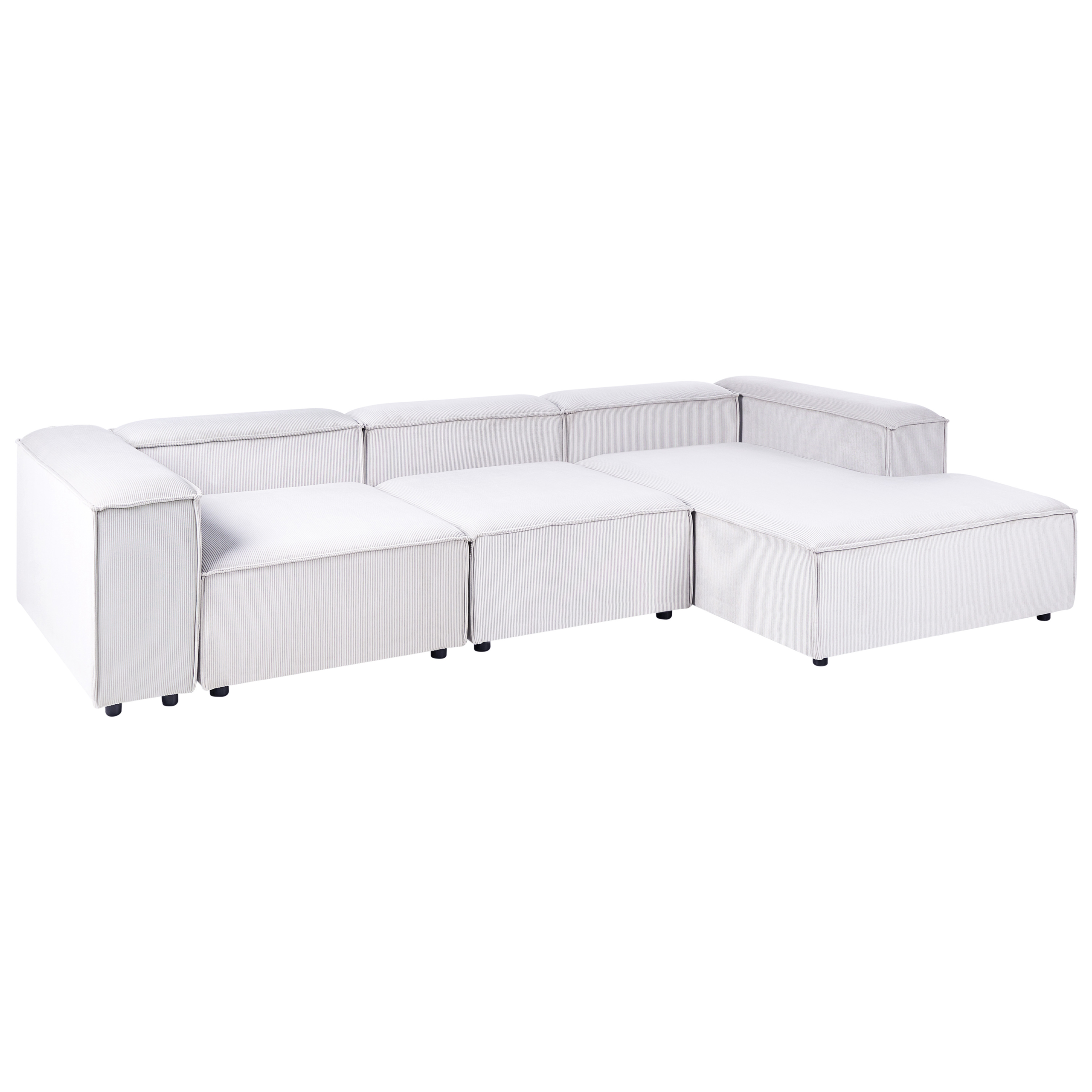 Moderni modulaarinen kulmasohva. Päivitä olohuoneen sisustusta ja tee sitä kodin tyylikkäin oleskelupaikka tällä moduulikulmasohvalla. Pehmeällä ja laadukkaalla vakosametilla verhoillussa kulmasohvassa on kestävä puurakenne ja tukevat mustat synteettiset jalat. Herttainen luonnonvalkoinen sävy saa sen sulautumaan täydellisesti mihin tahansa moderniin tai perinteiseen sisustukseen. Moduulisohva koostuu kolmesta moduulielementistä, jotka voidaan asettaa yhteen tai erikseen ainutlaatuisten kokonaisuuksien luomiseksi.