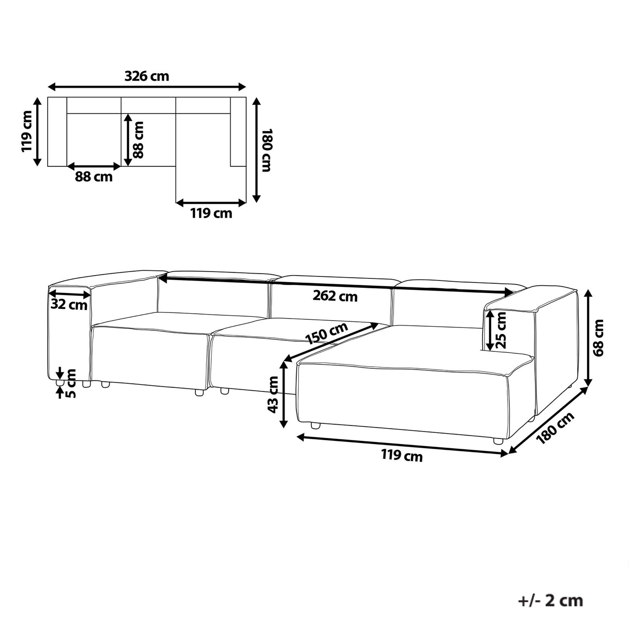 Hintaan sisältyy: 1 x Divaani, 1 x Kulmamoduuli, 1 x Keskimoduuli