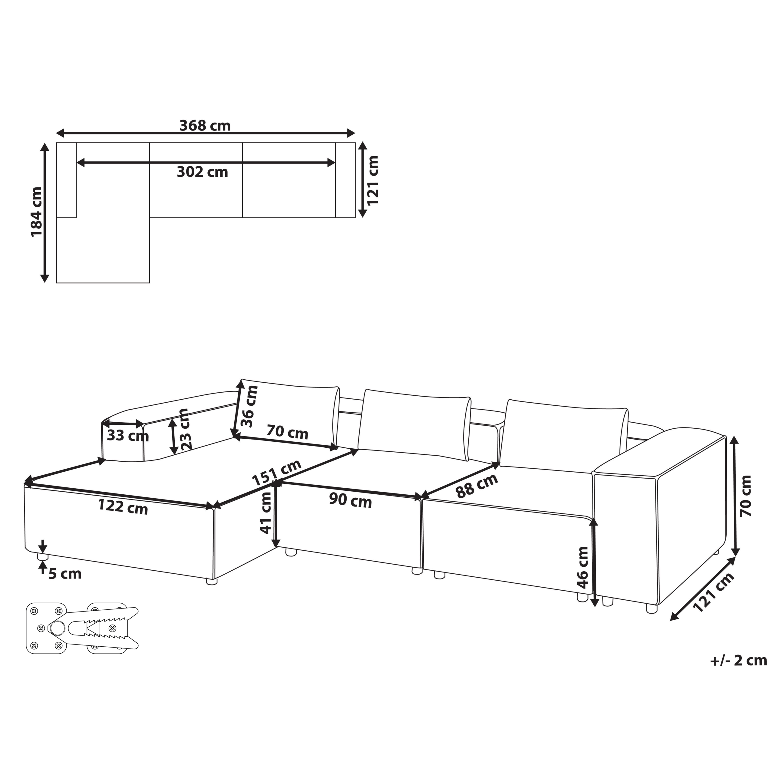 Istuinala: 302x151 cm